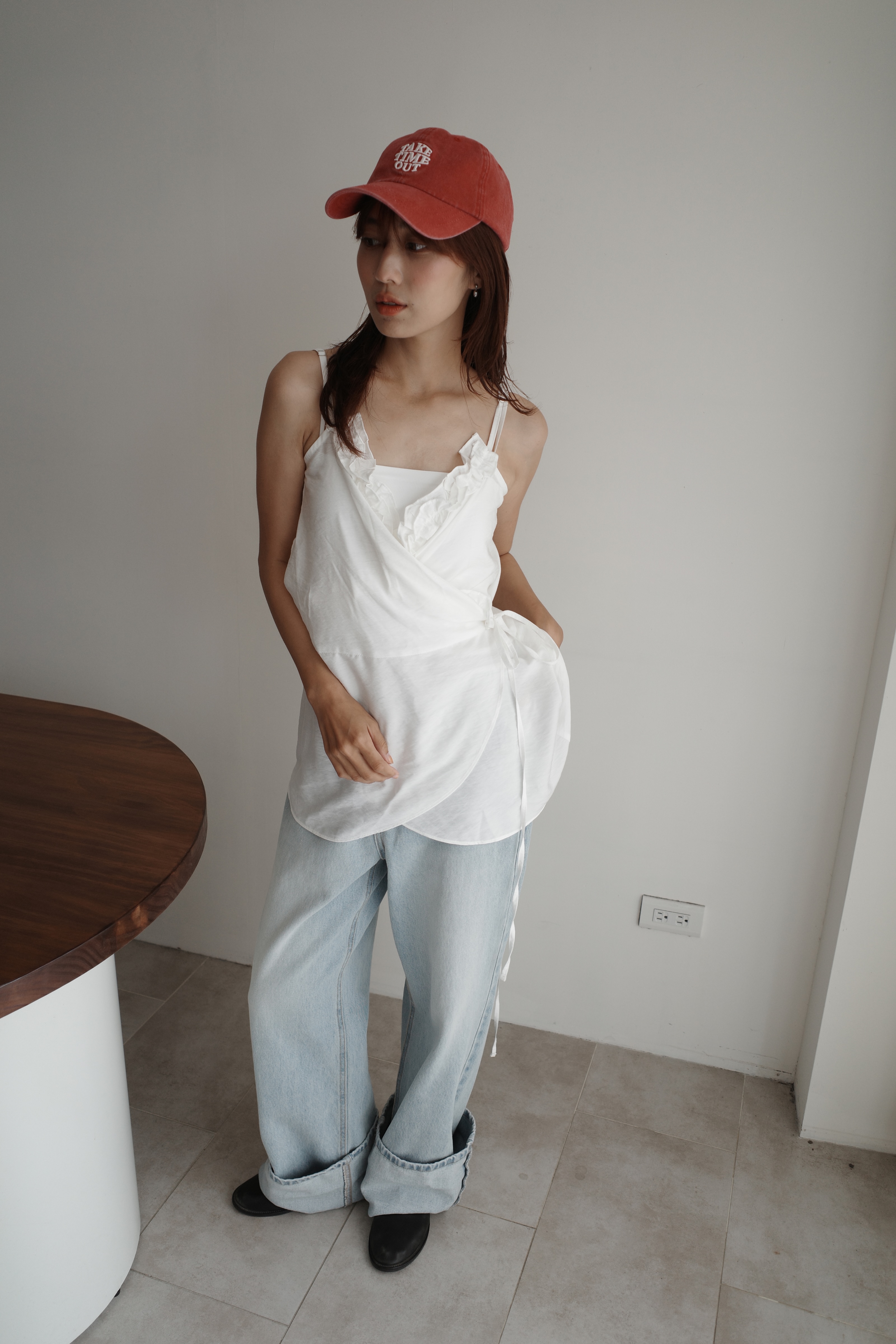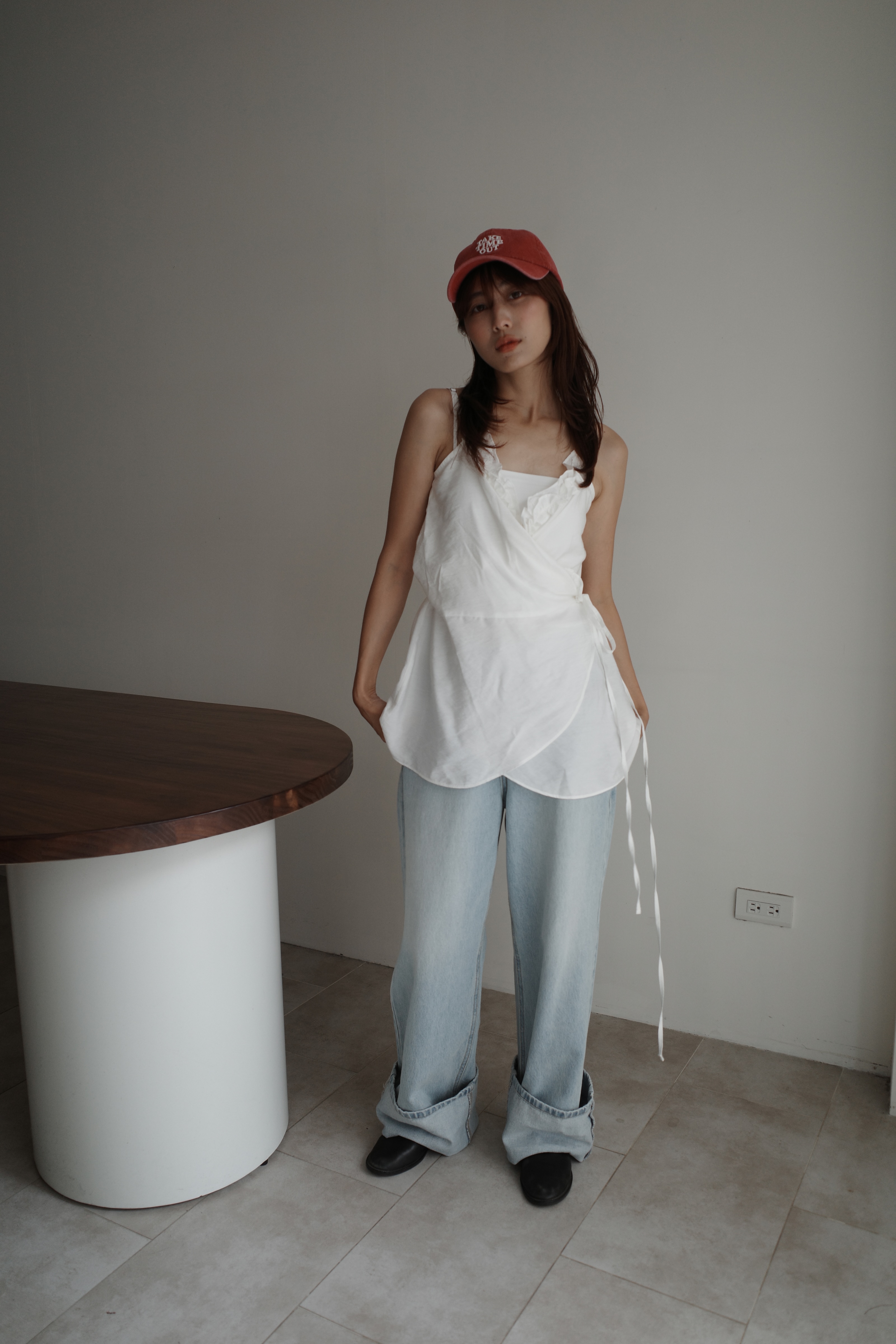 荷葉邊肩帶小裙擺背心
