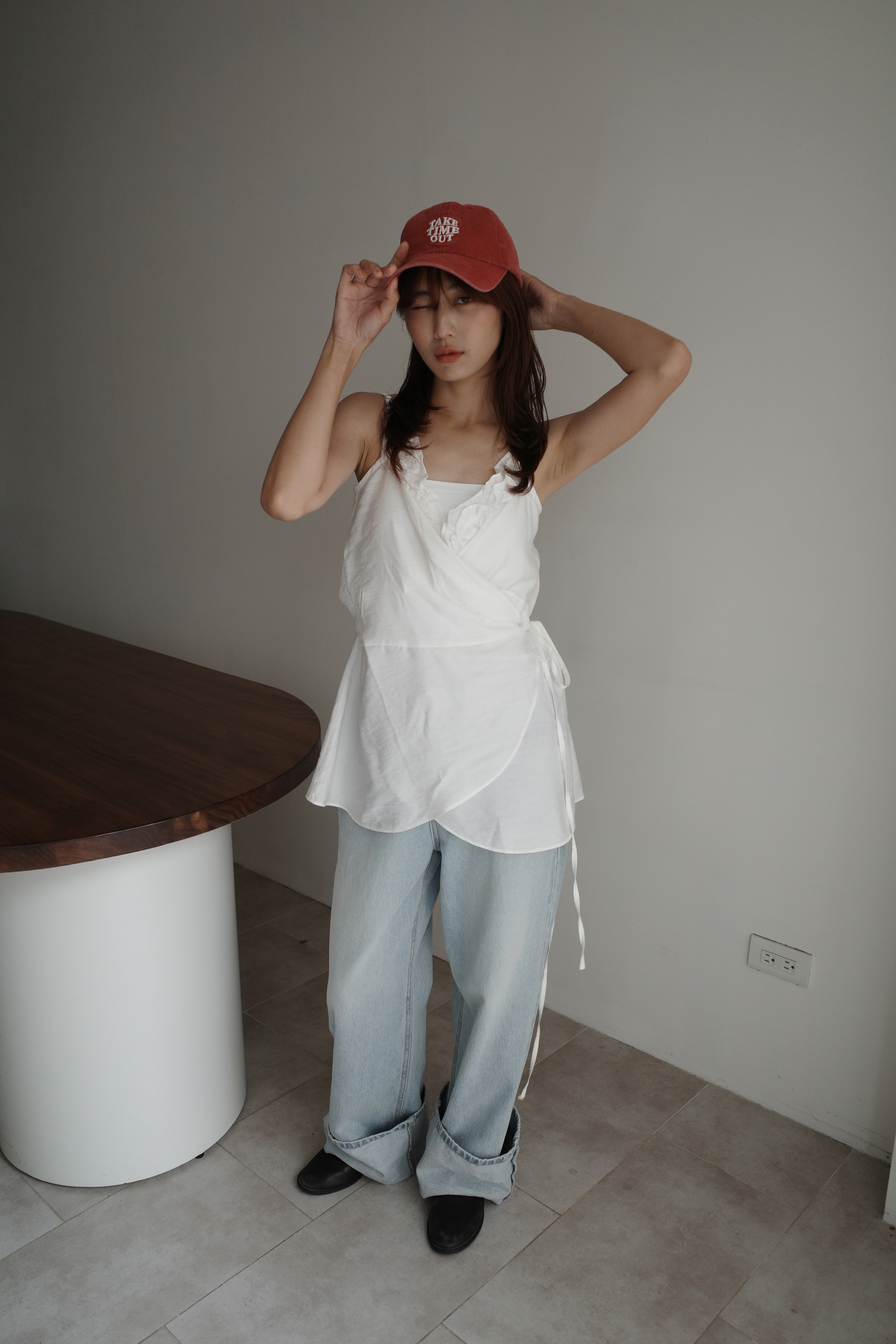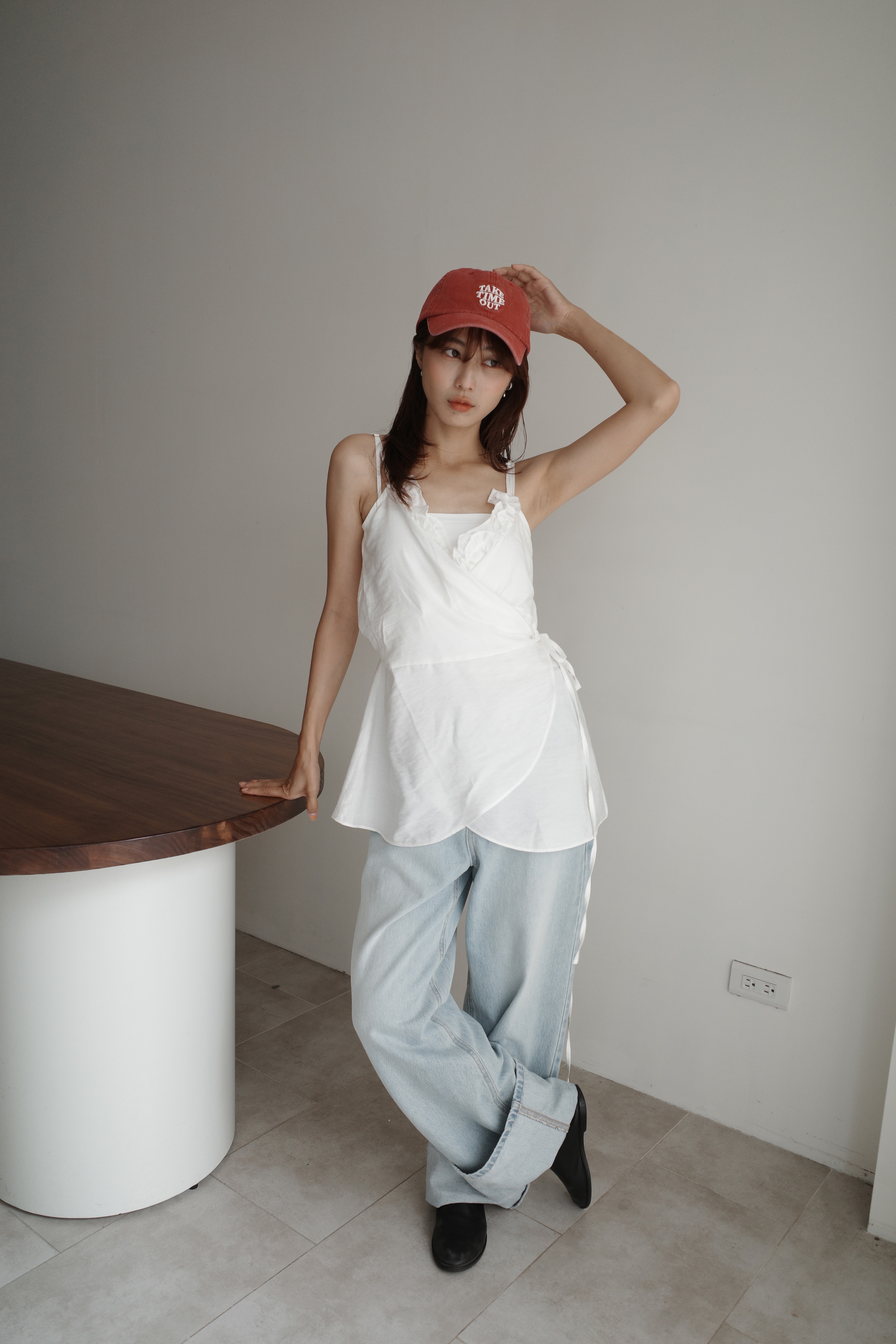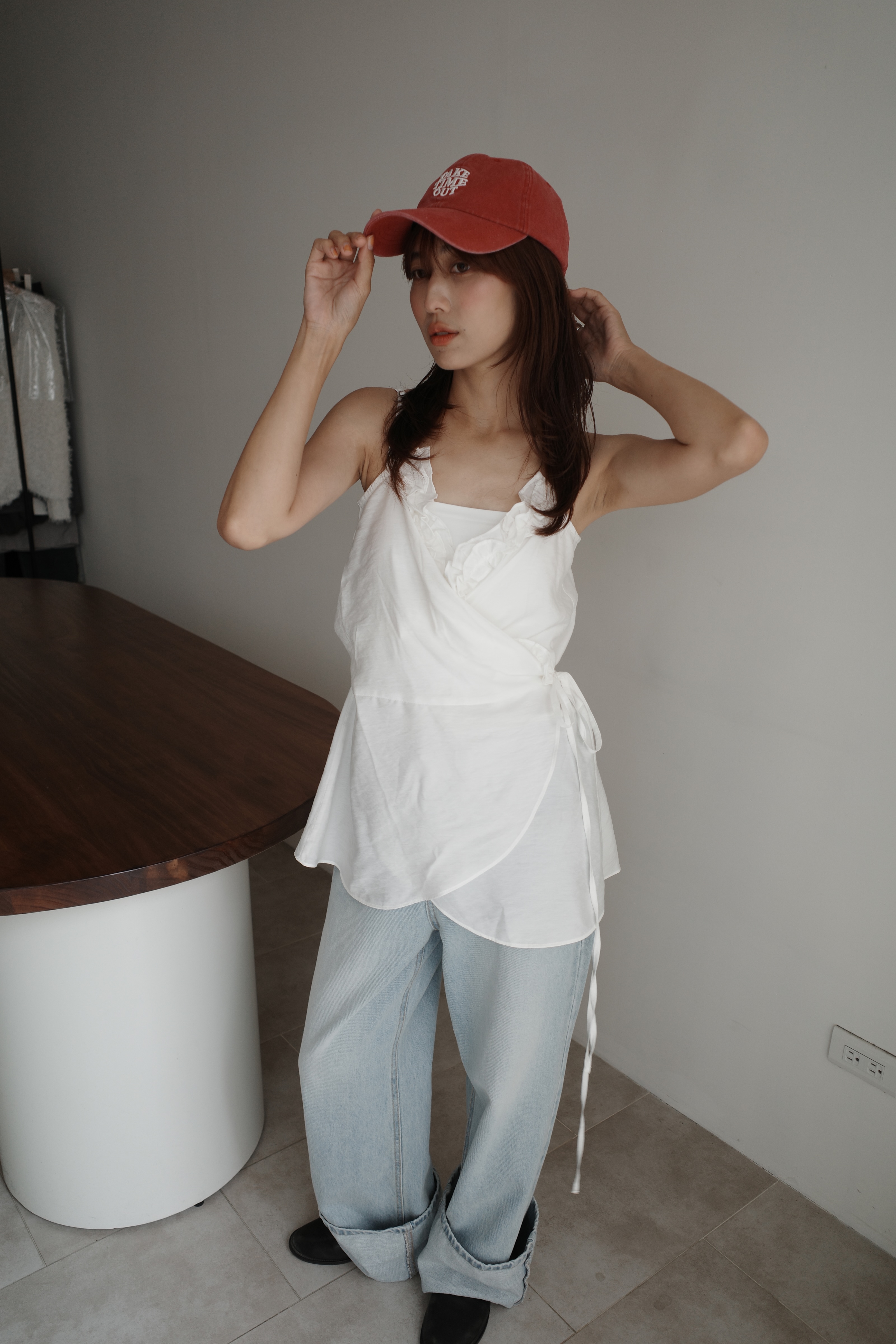 繞脖扣環下垂帶背心