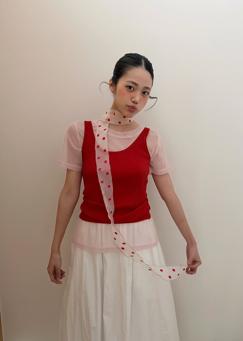 繞脖扣環下垂帶背心