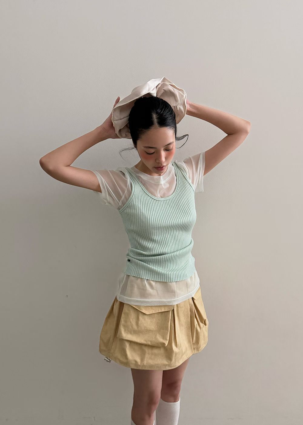 抓褶下裙擺鬆緊平口(可當短裙)