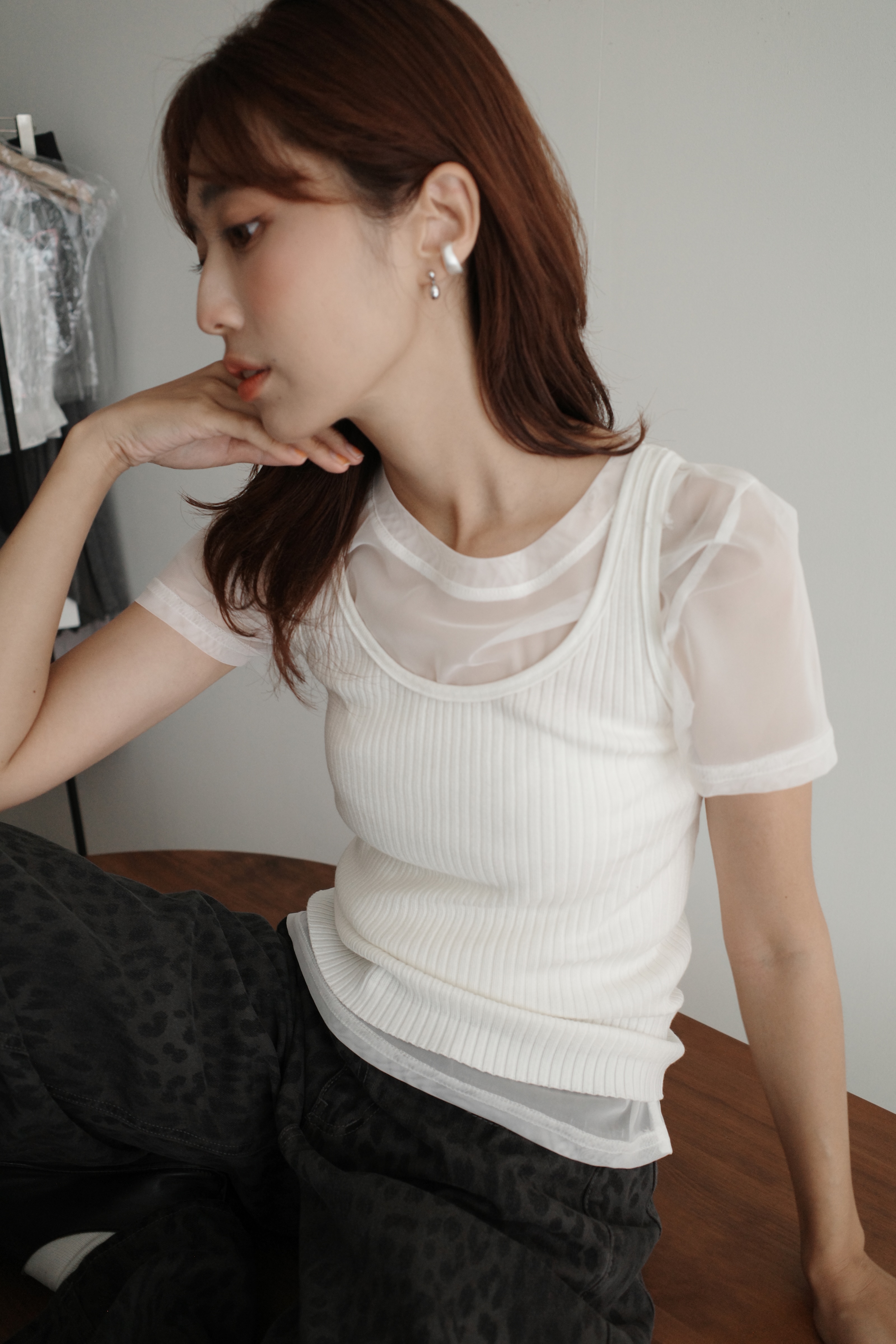 (不買會後悔)網紗坑條背心兩件式set