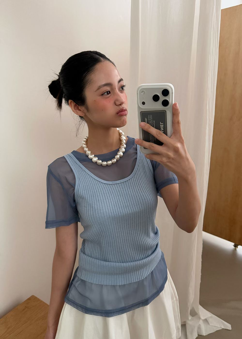 立體抓褶設計格紋襯