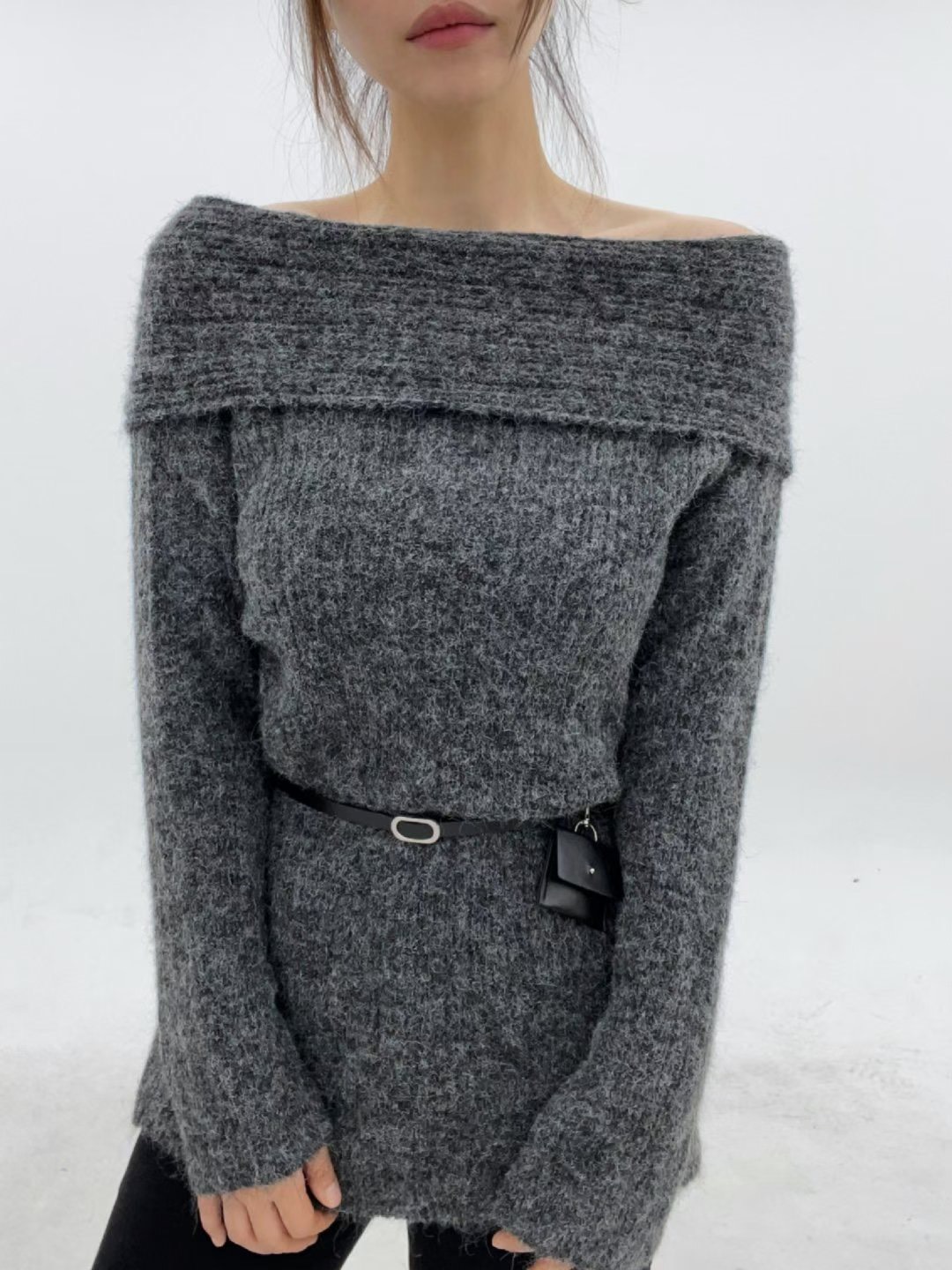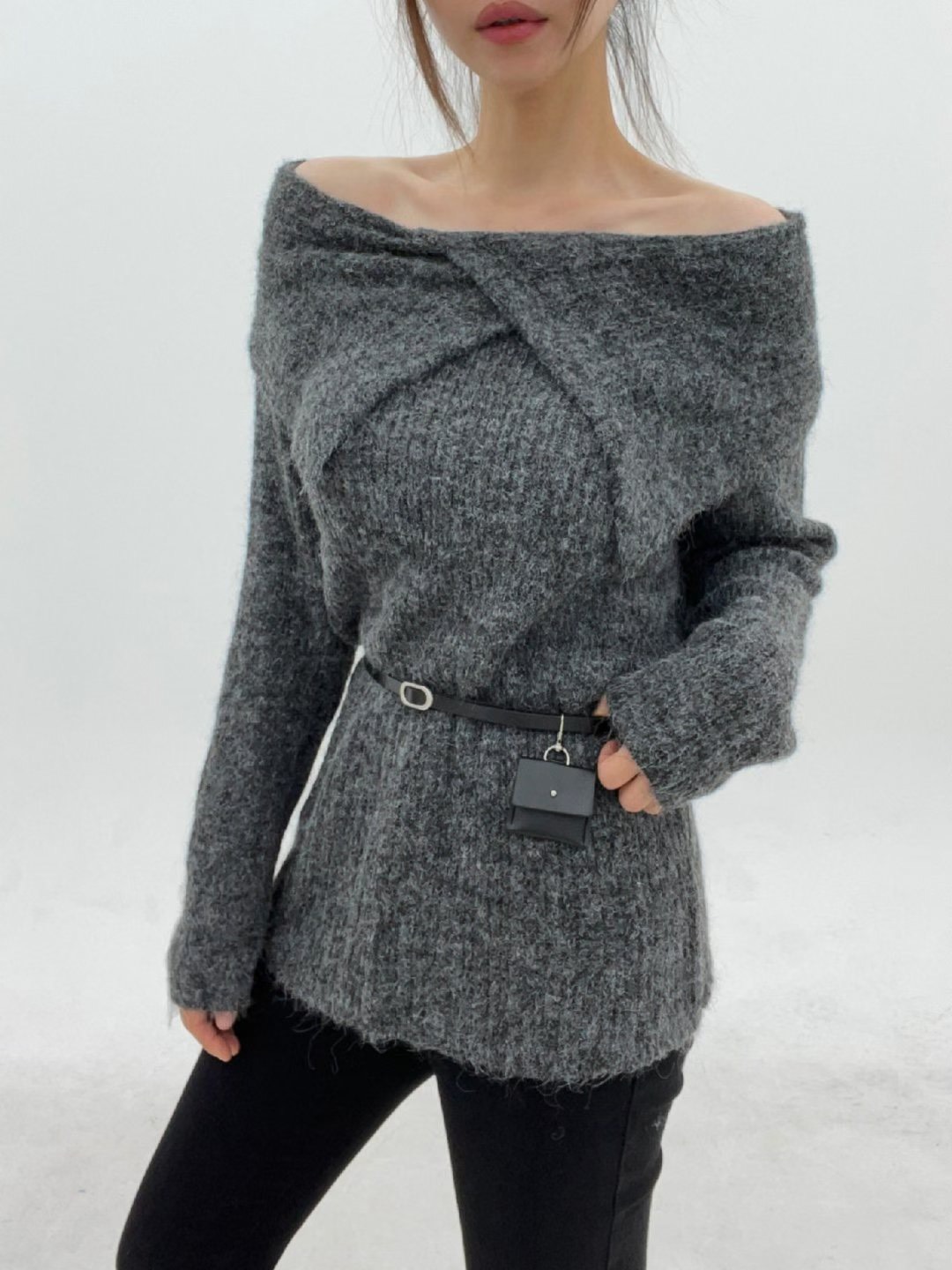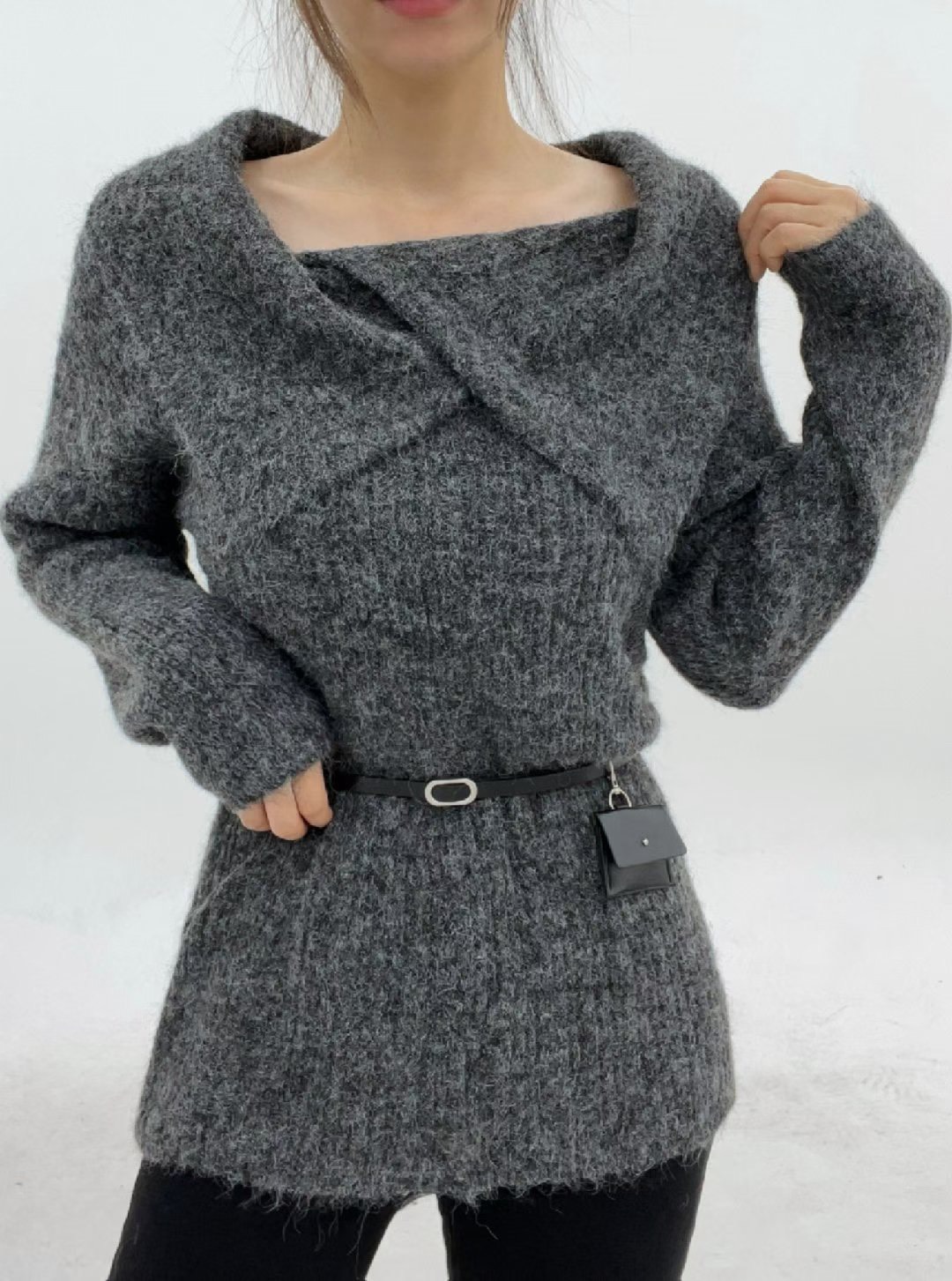 鬆鬆垂領假兩件繞脖上衣