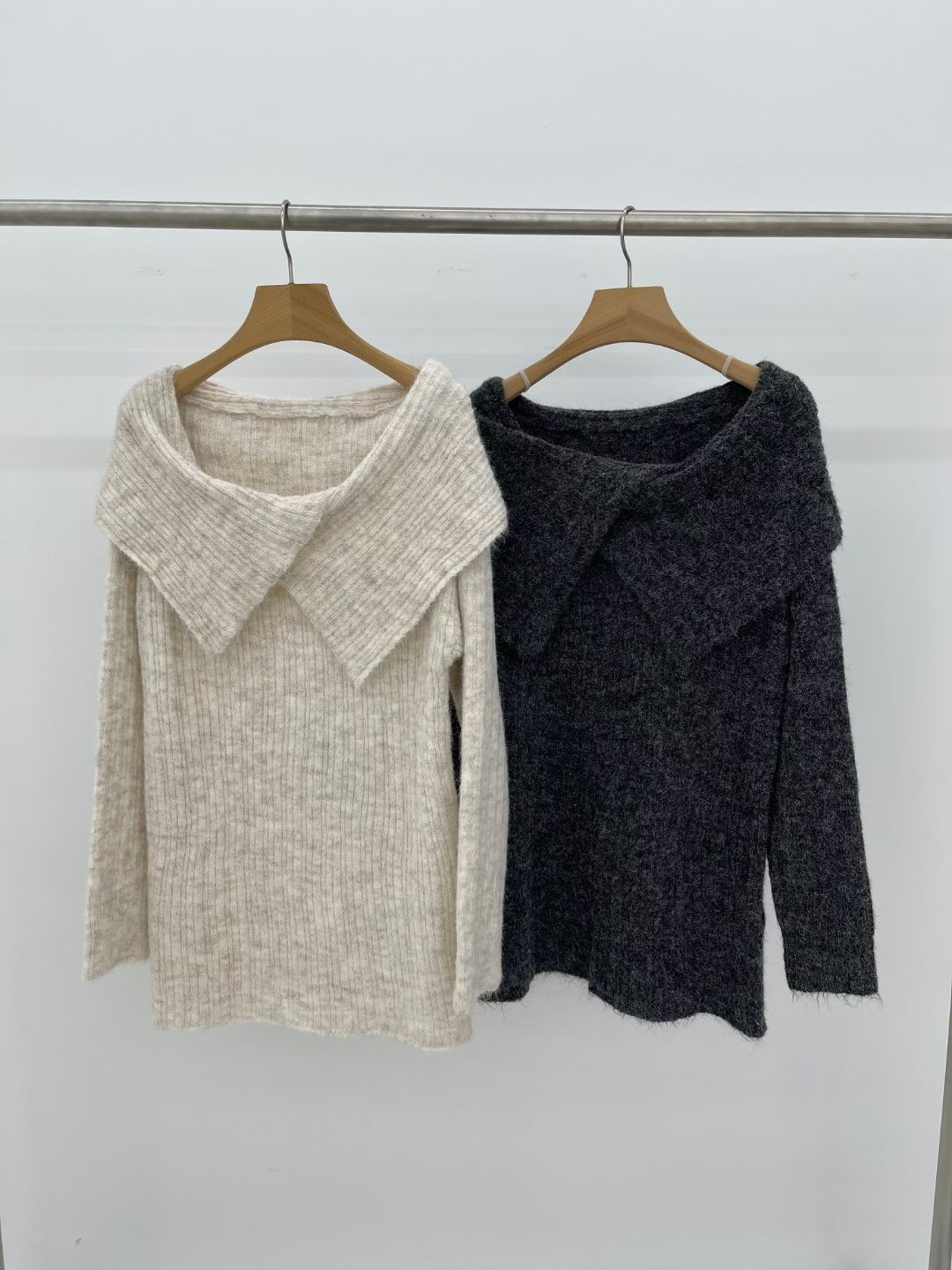 前後兩穿大V翻領平口毛衣