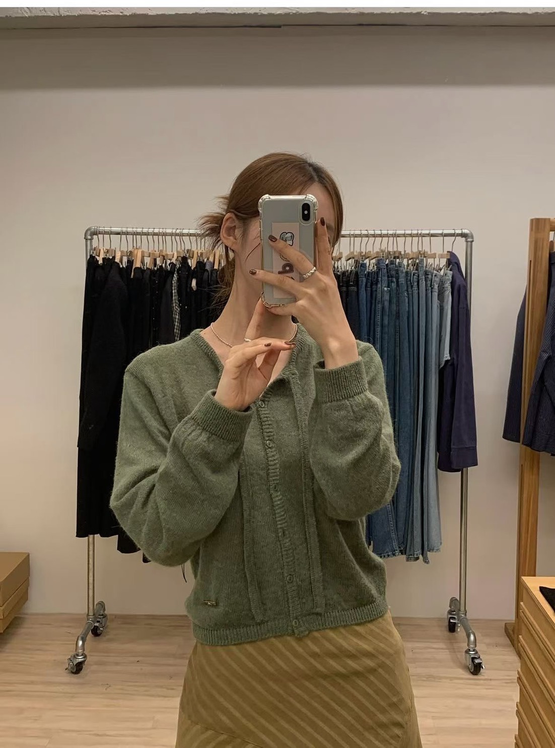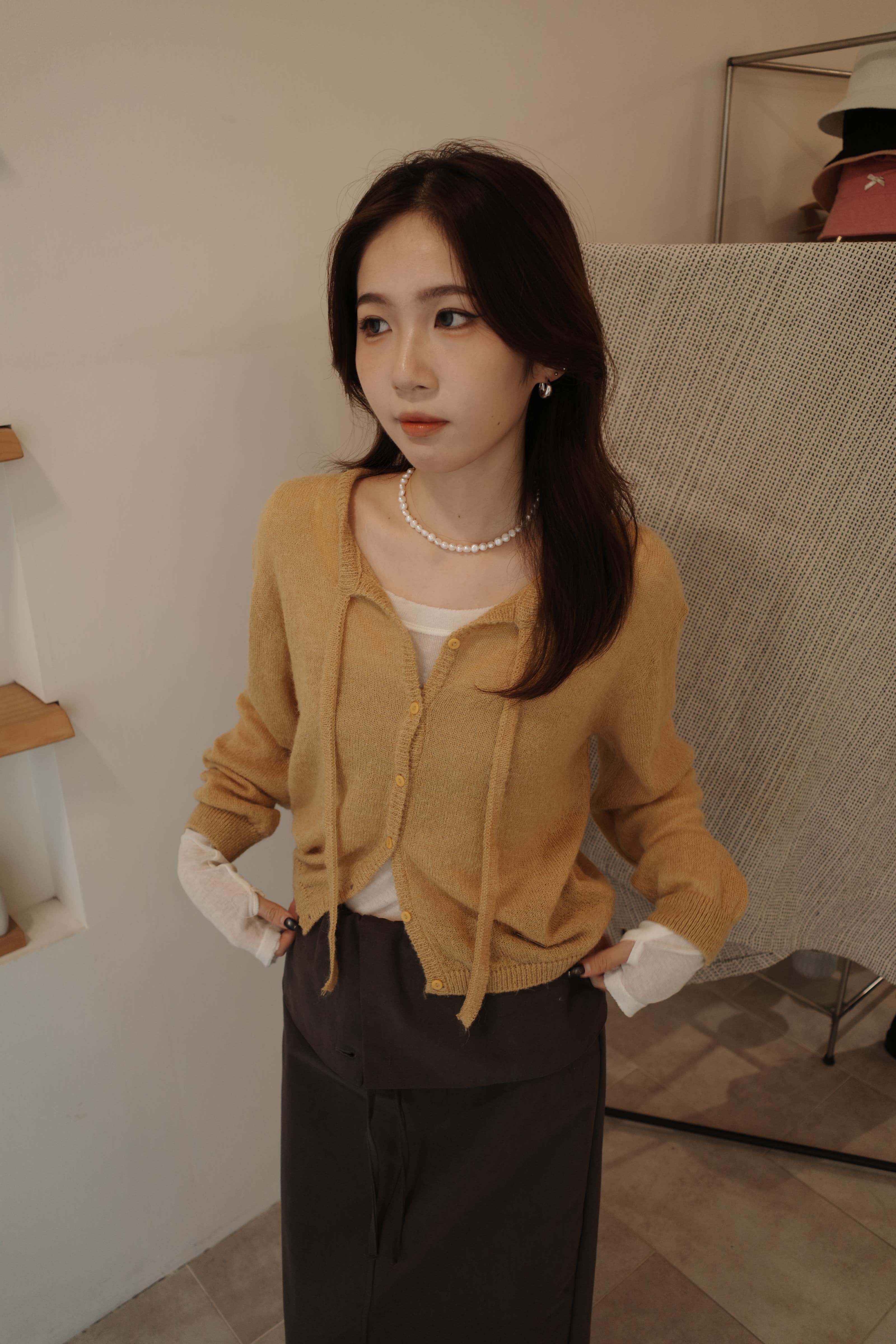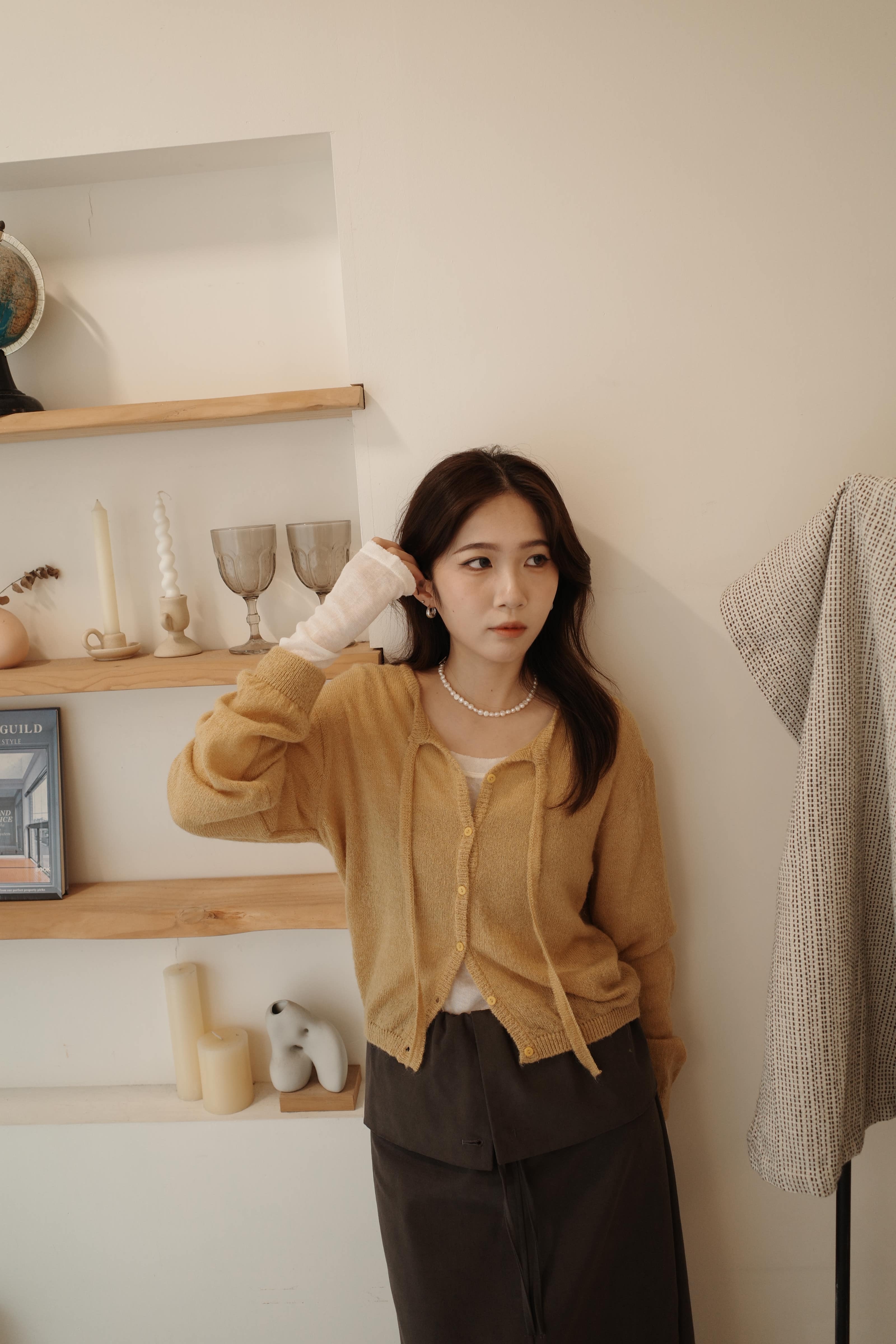 鬆軟單線排扣薄針織上衣