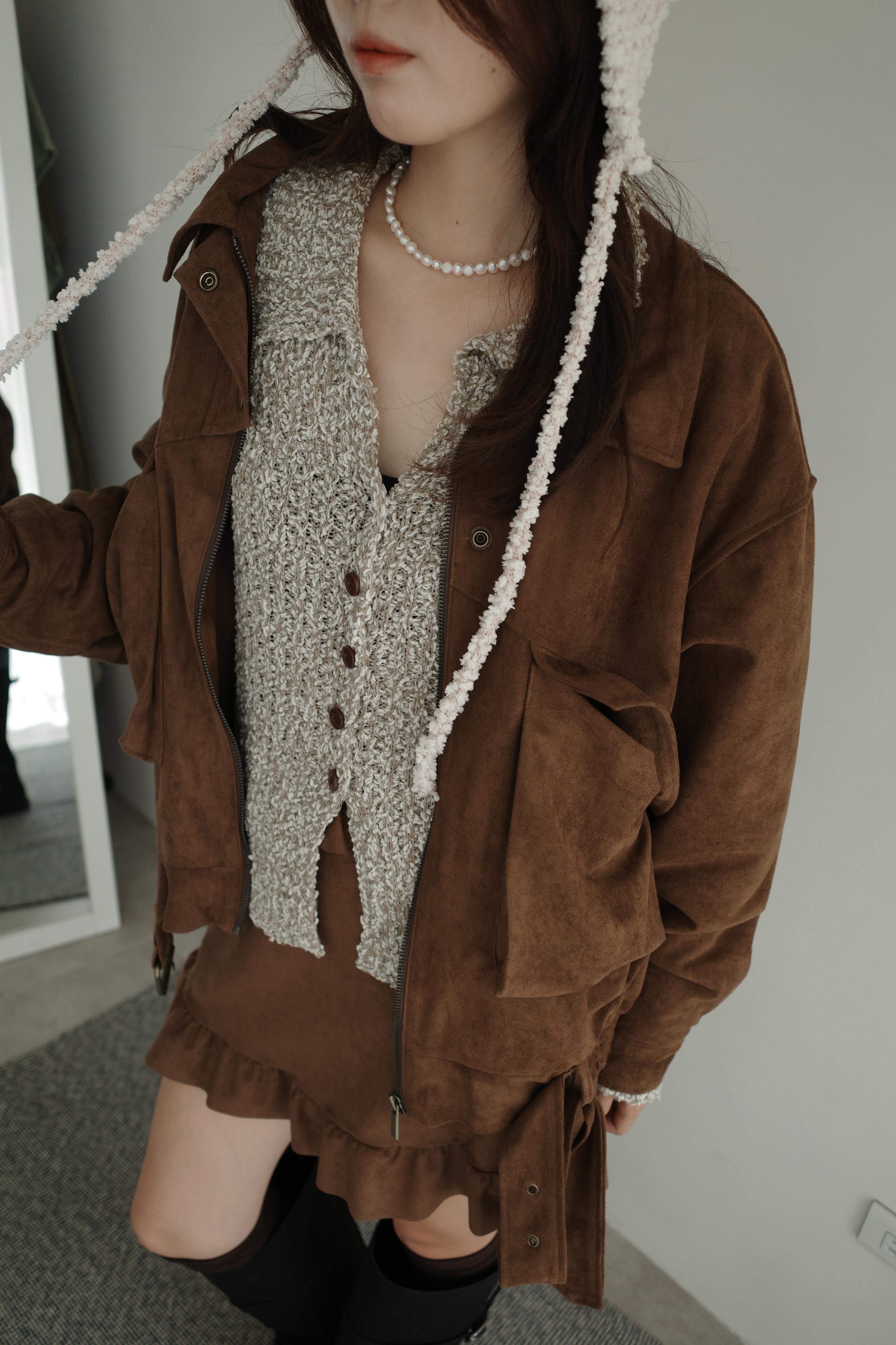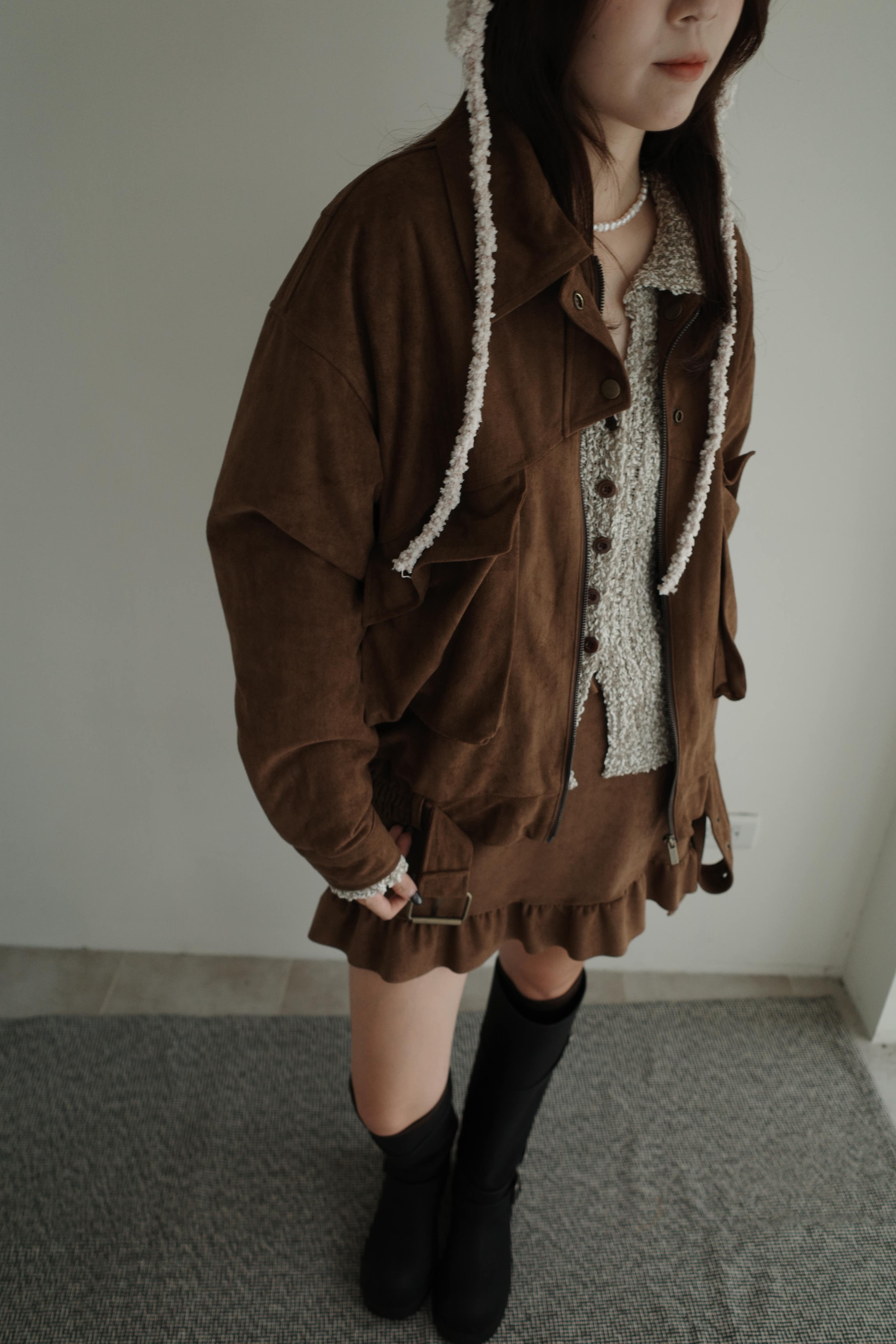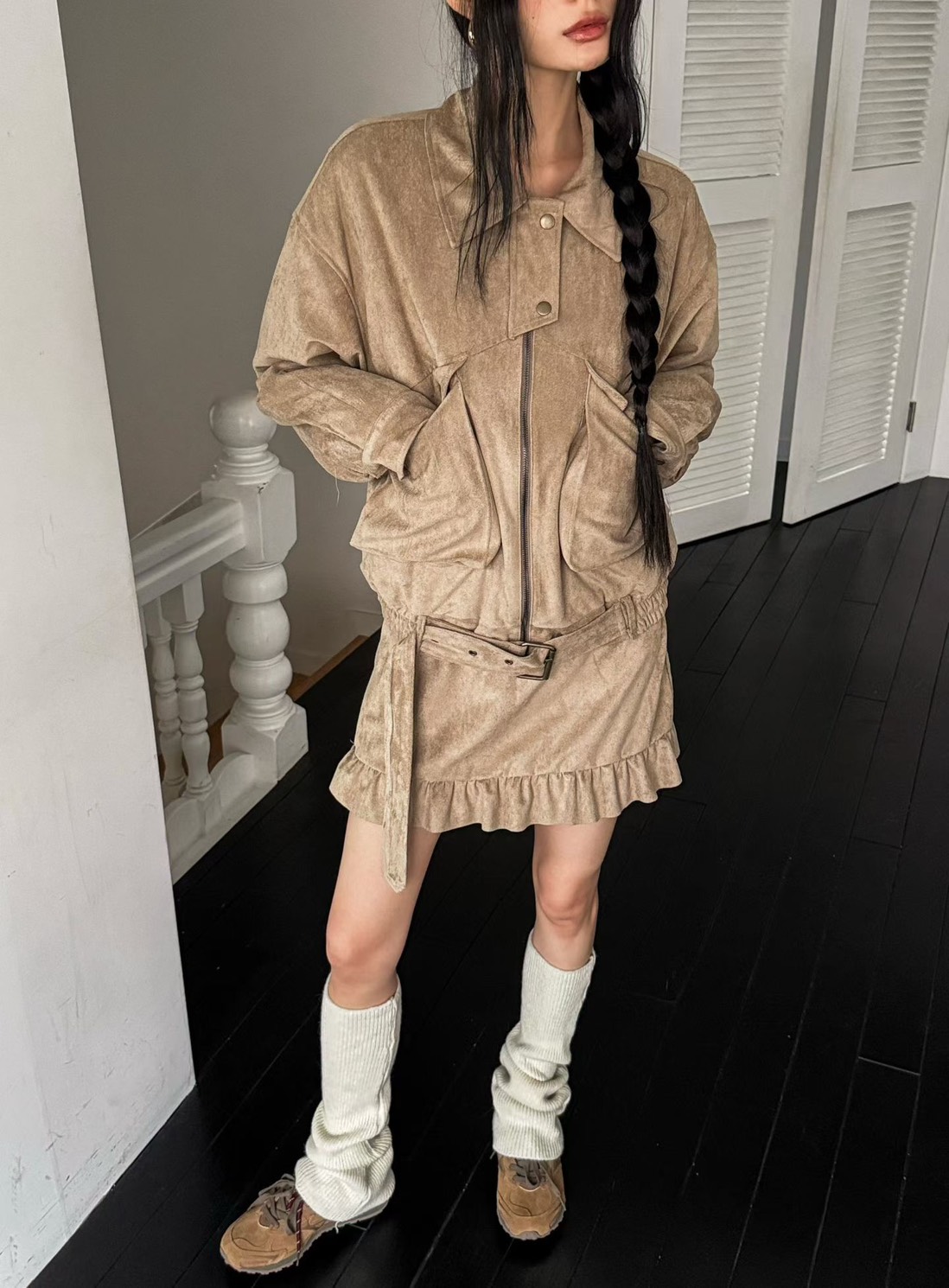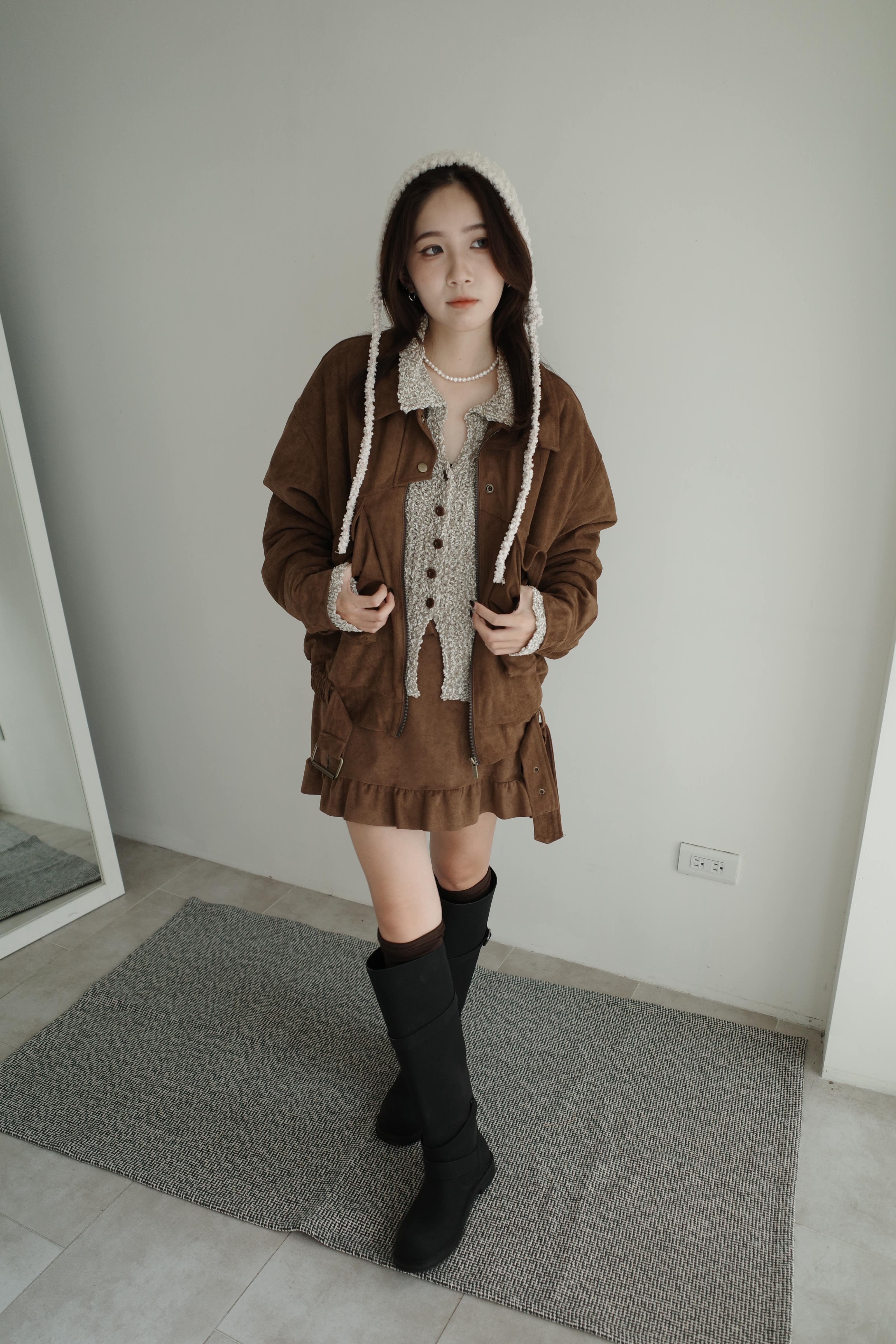 下擺設計麂皮半裙