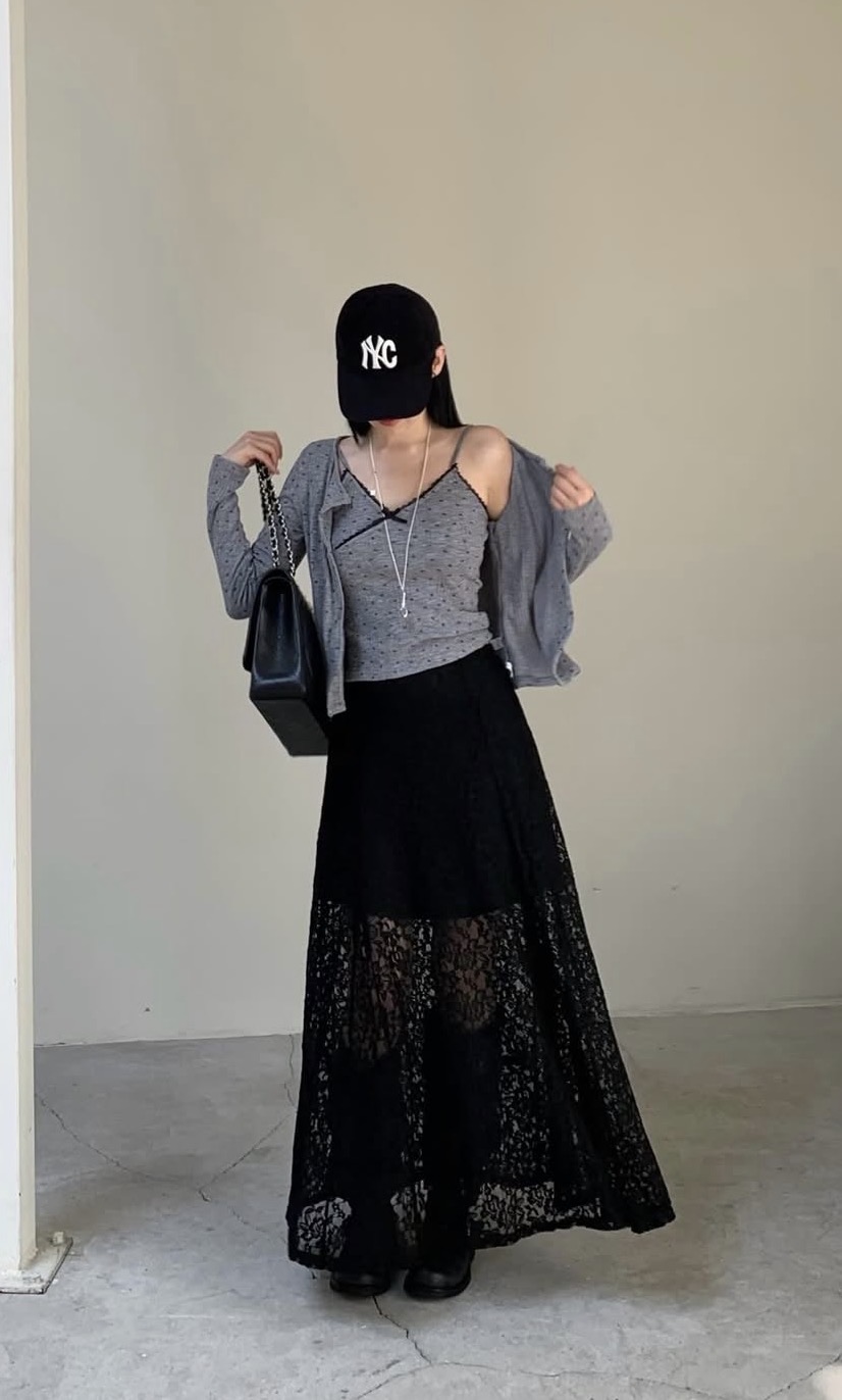 漂亮透透蕾絲A字裙