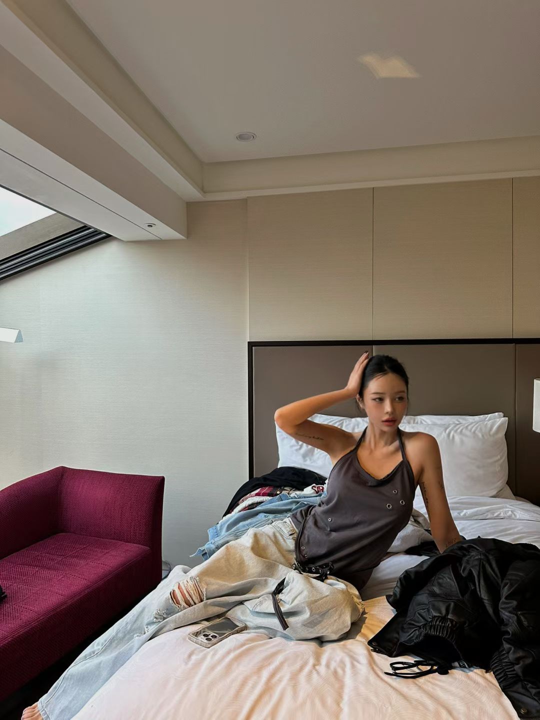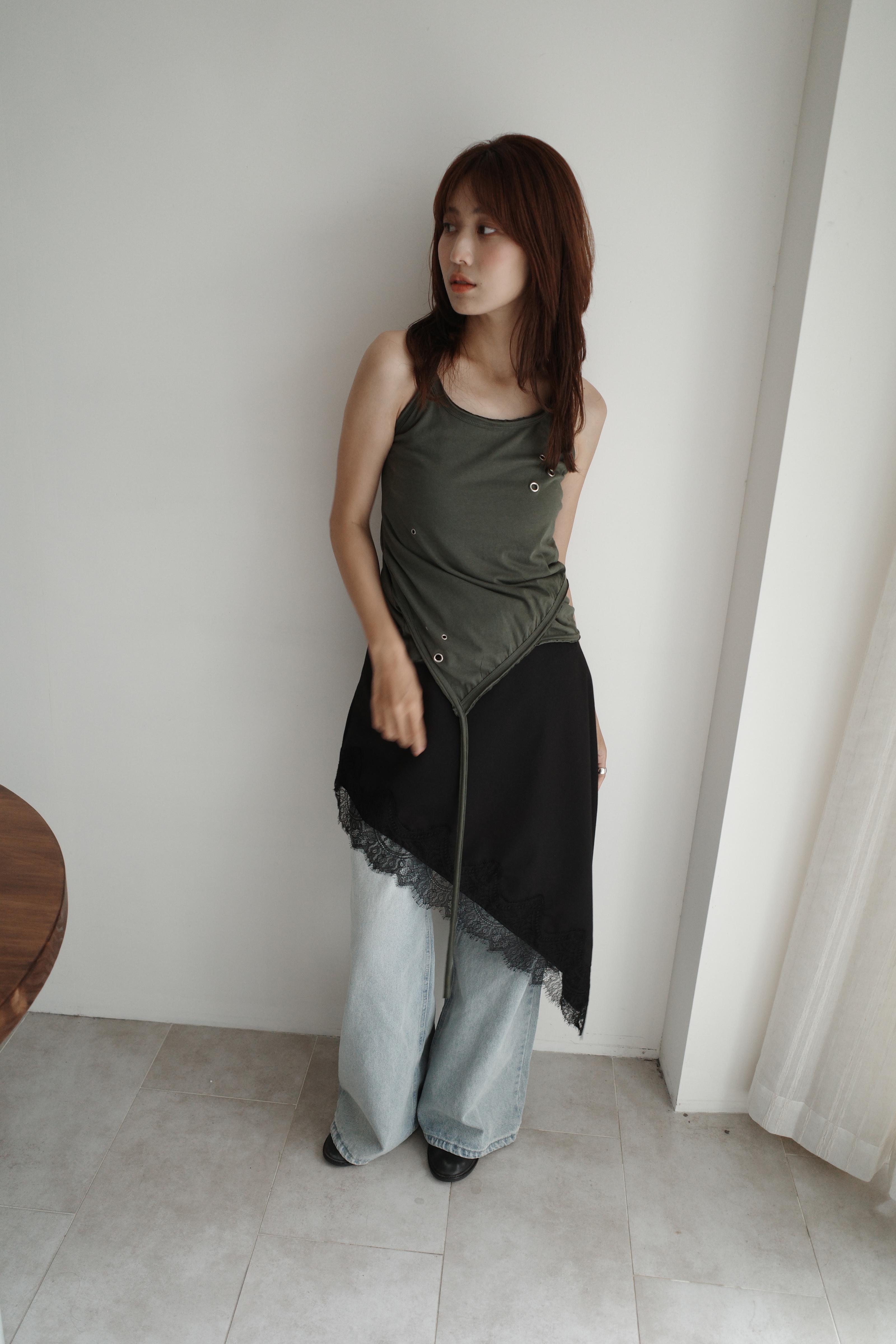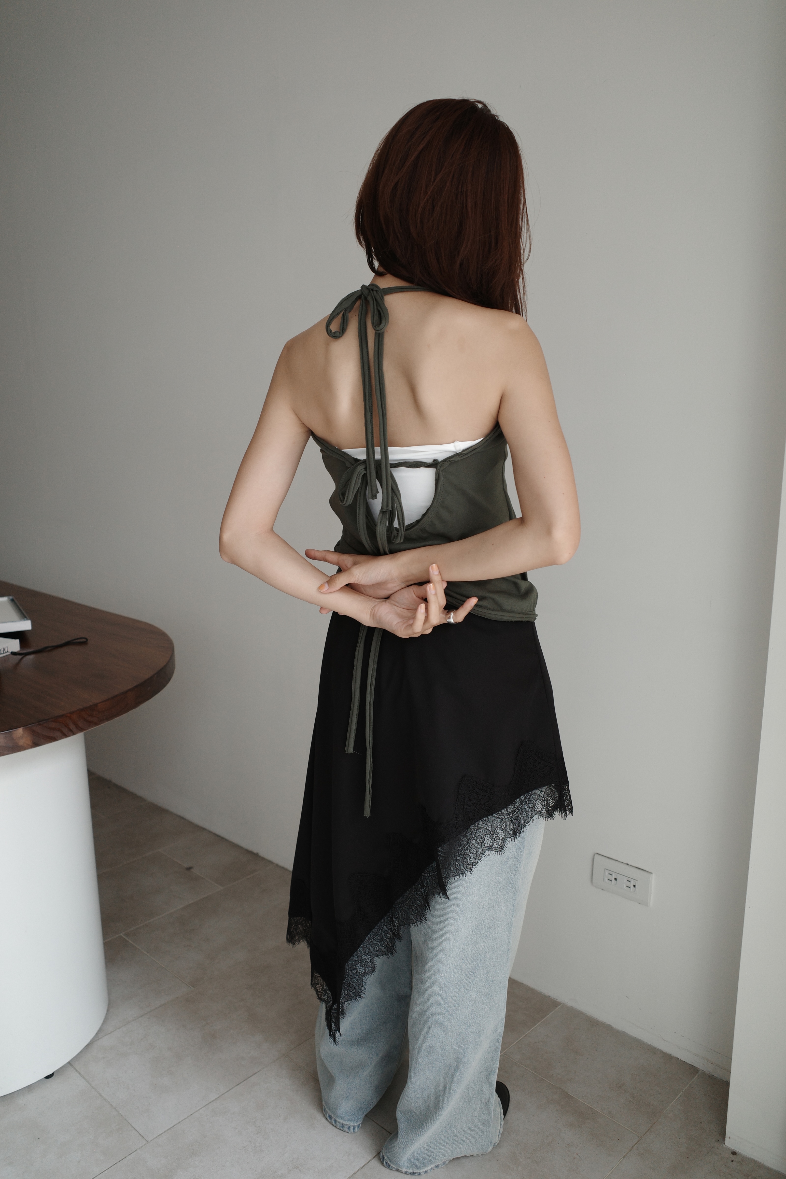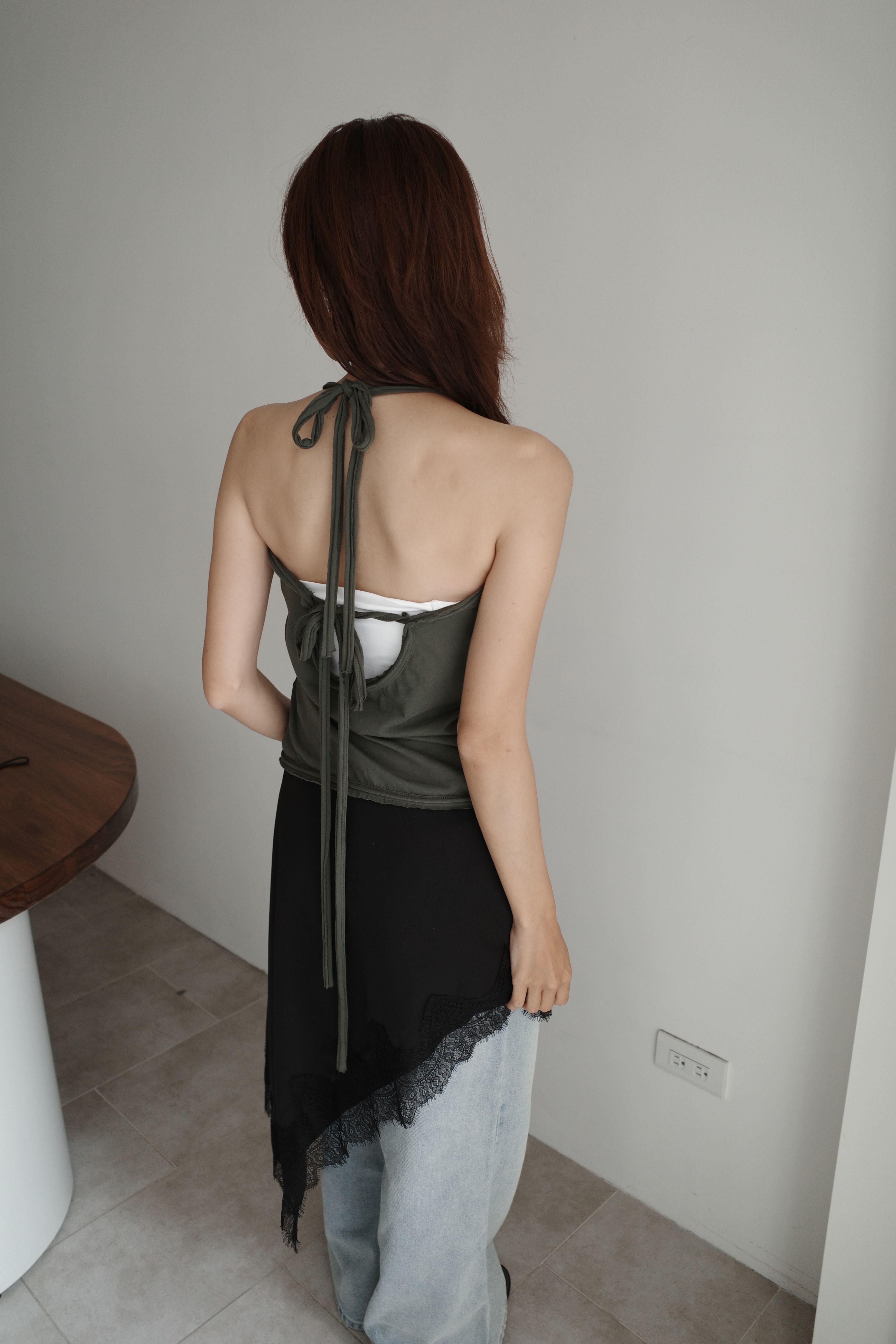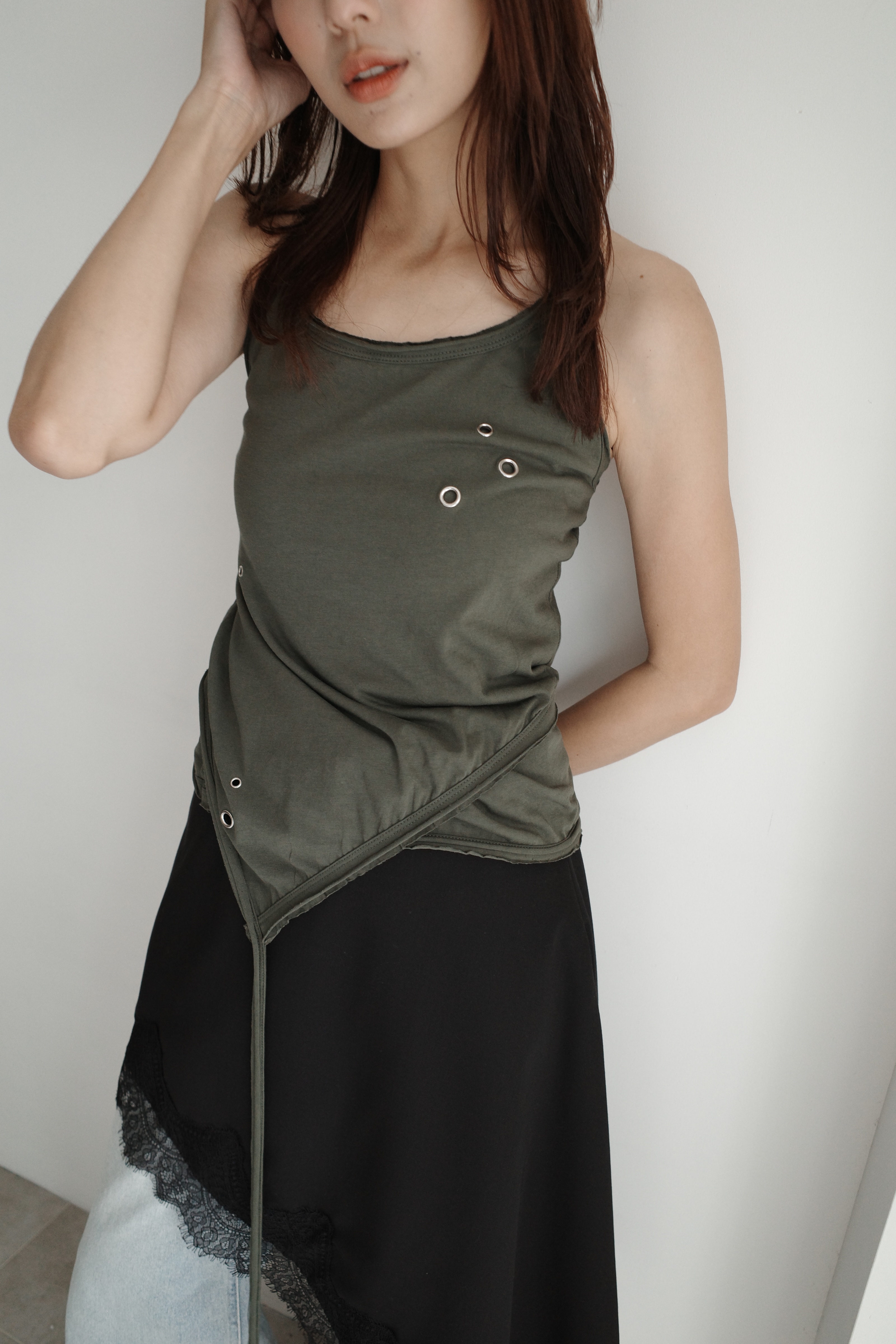 繞脖扣環下垂帶背心