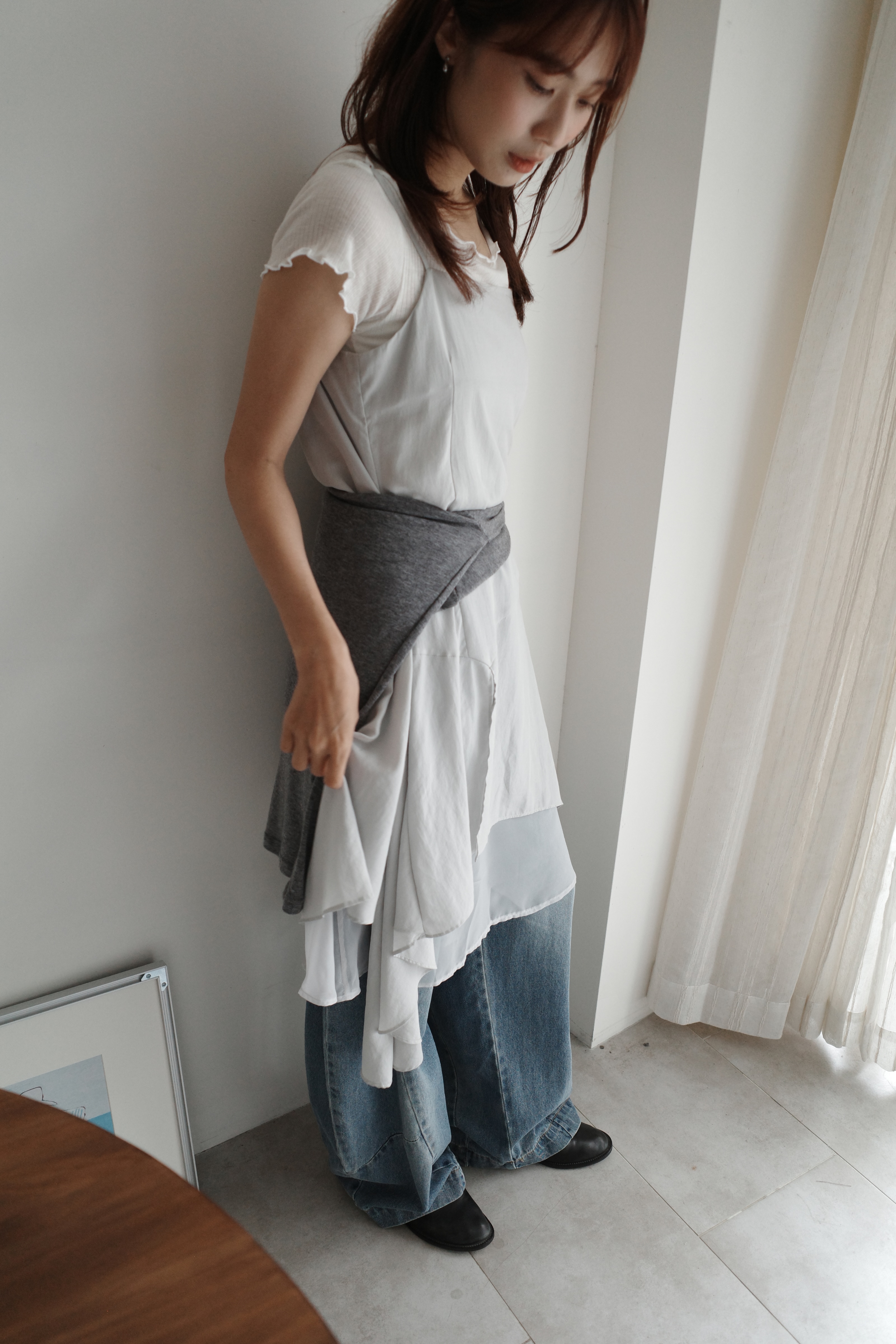 『梨形友善』大反折淺刷色寬直筒牛仔褲