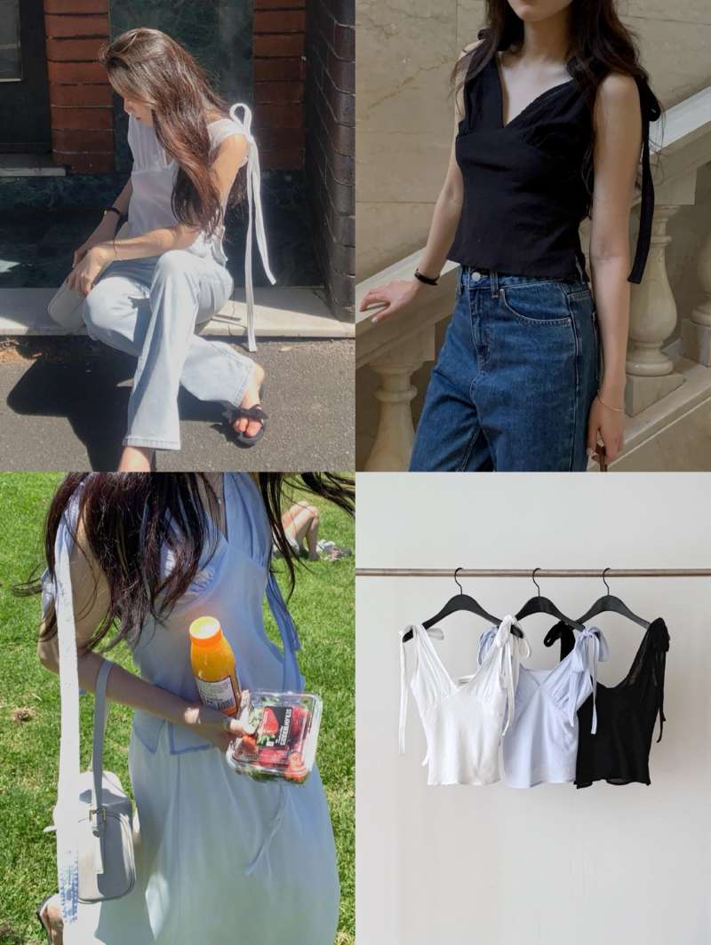 開V綁帶設計背心