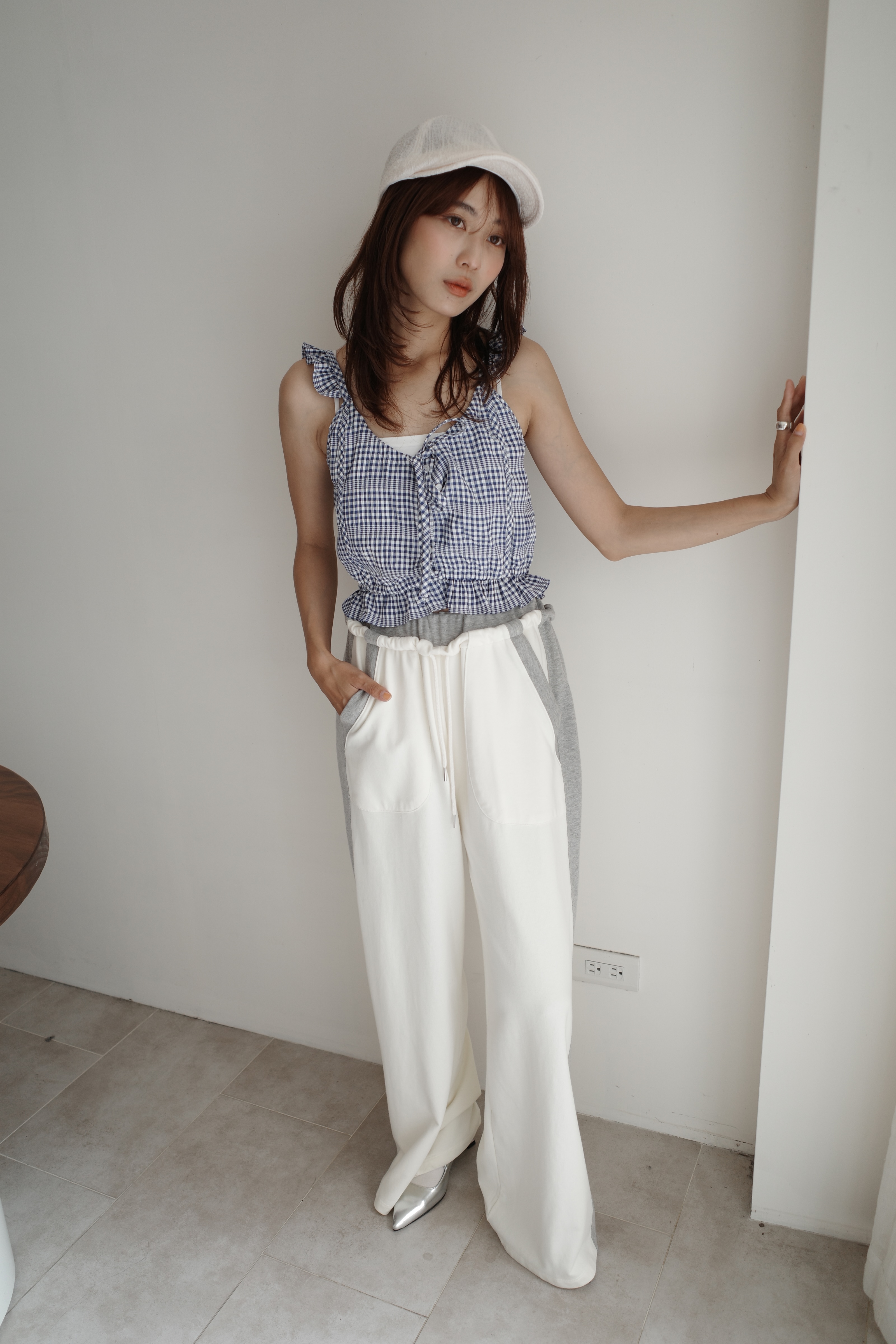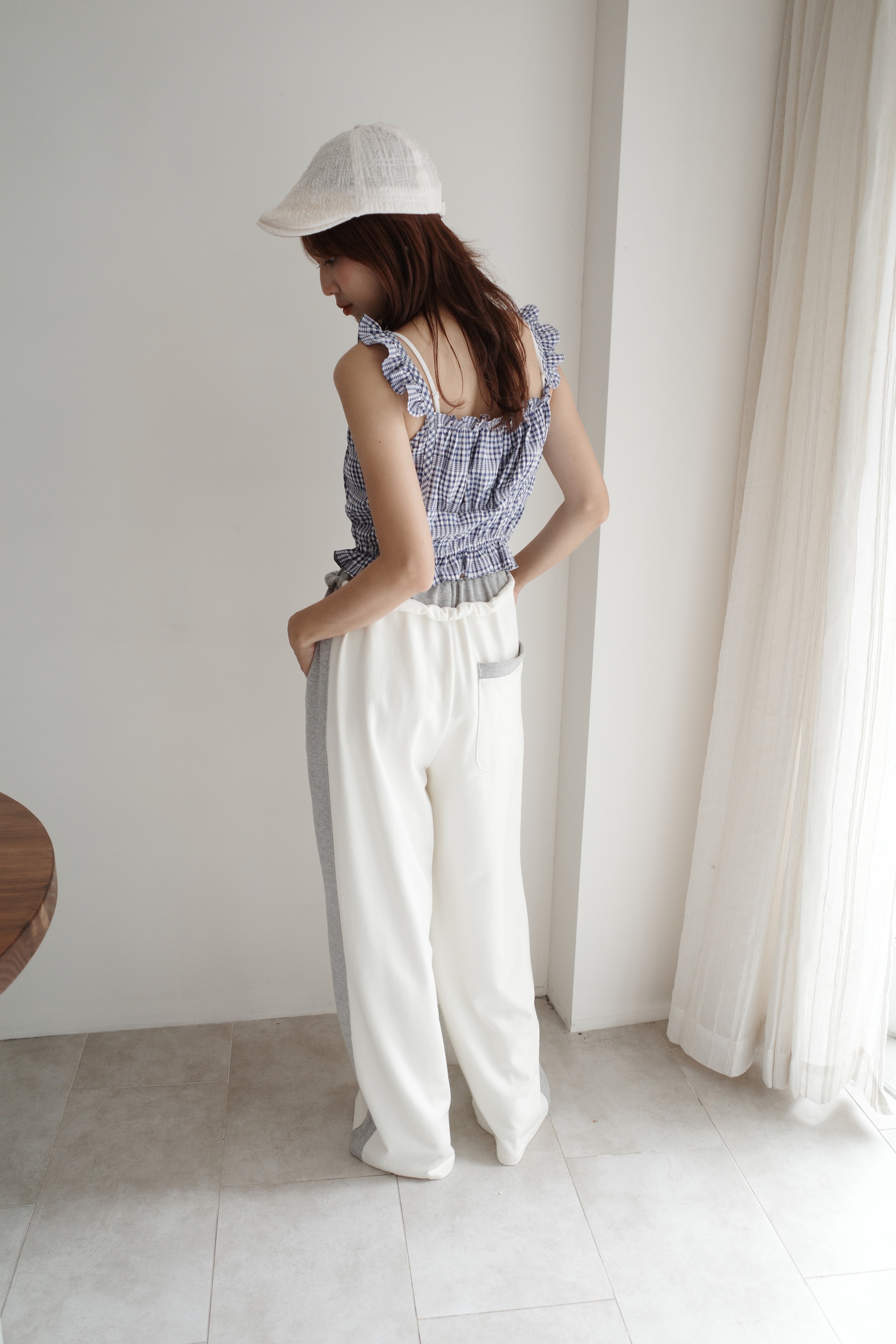 高質感腿長拼接棉褲