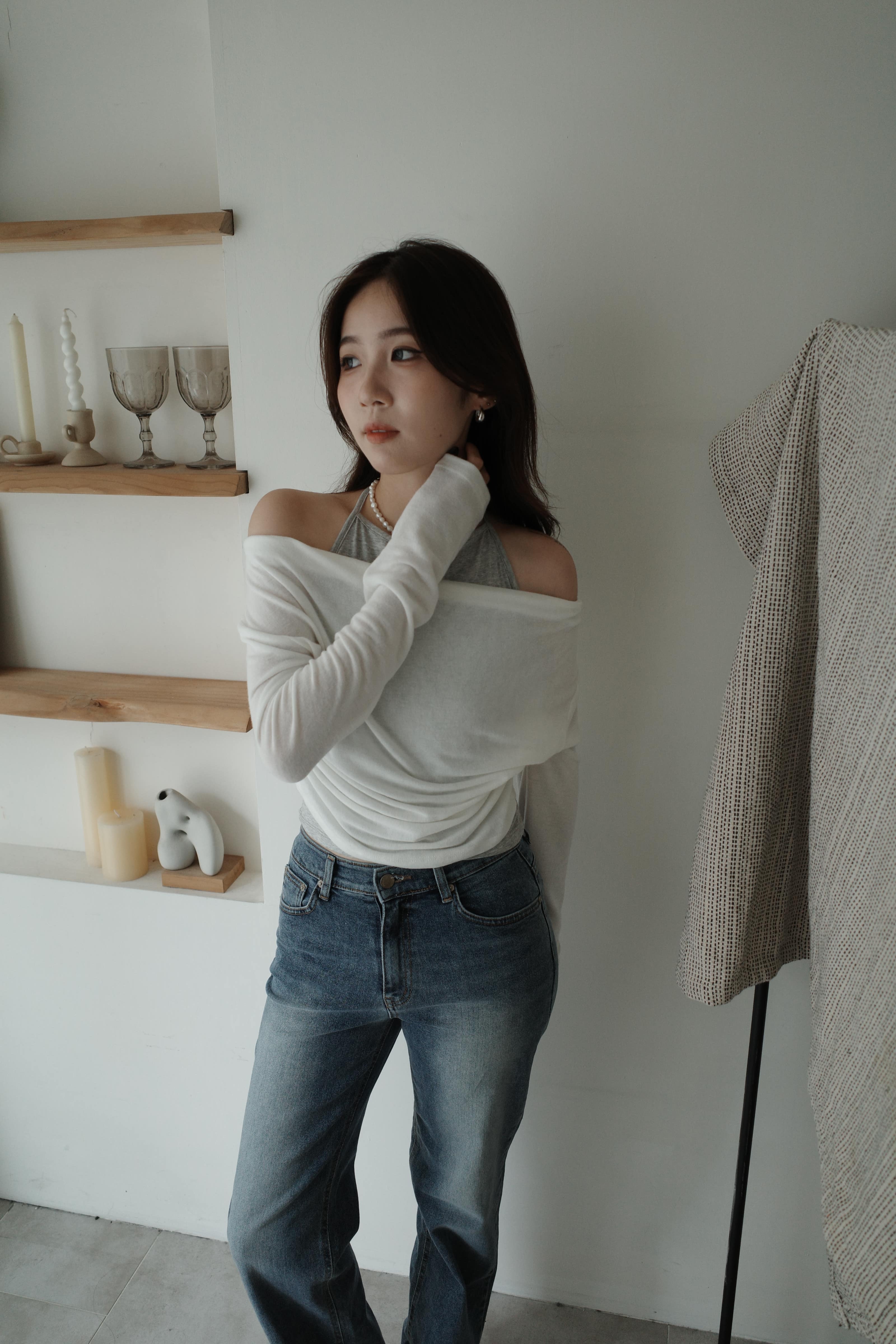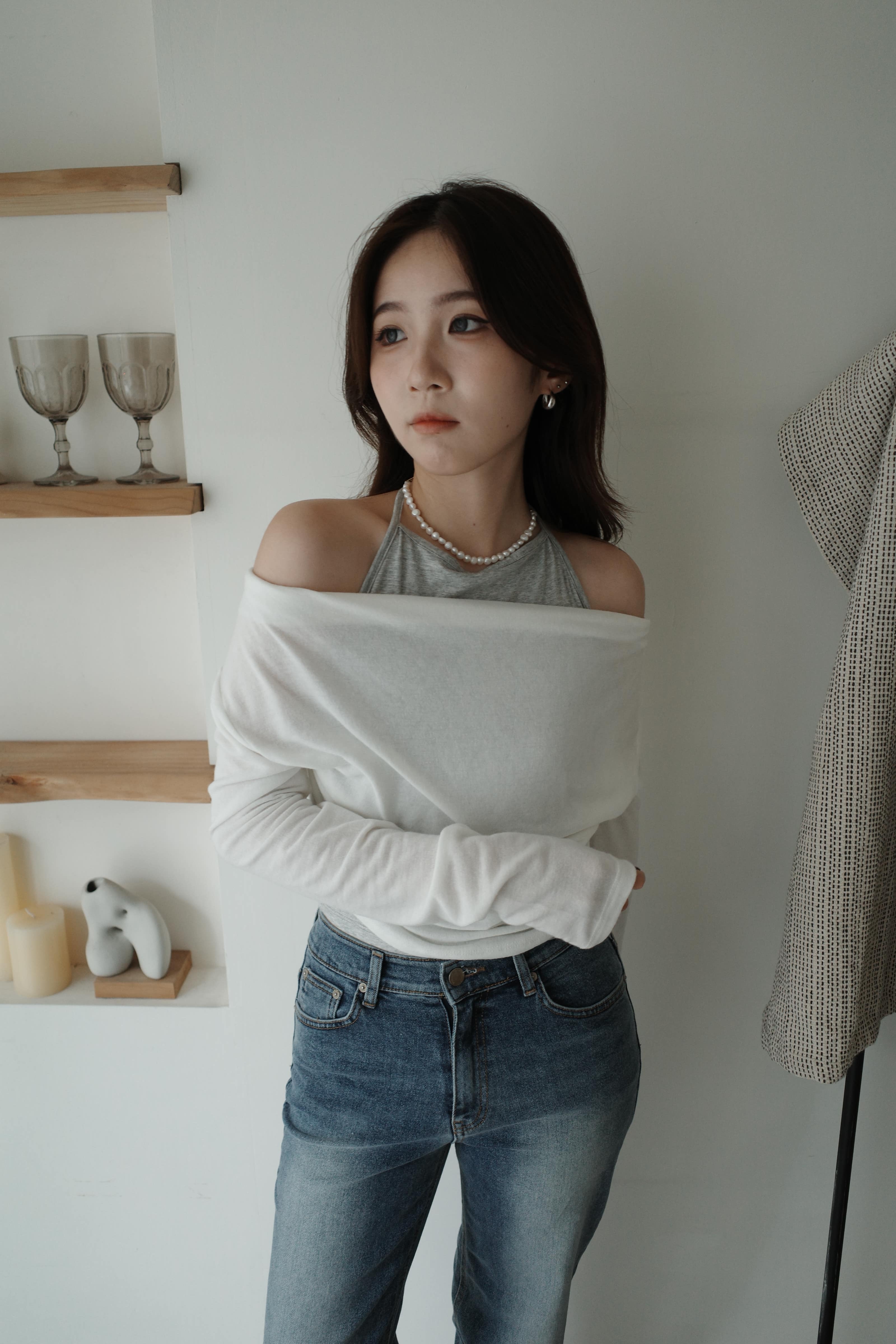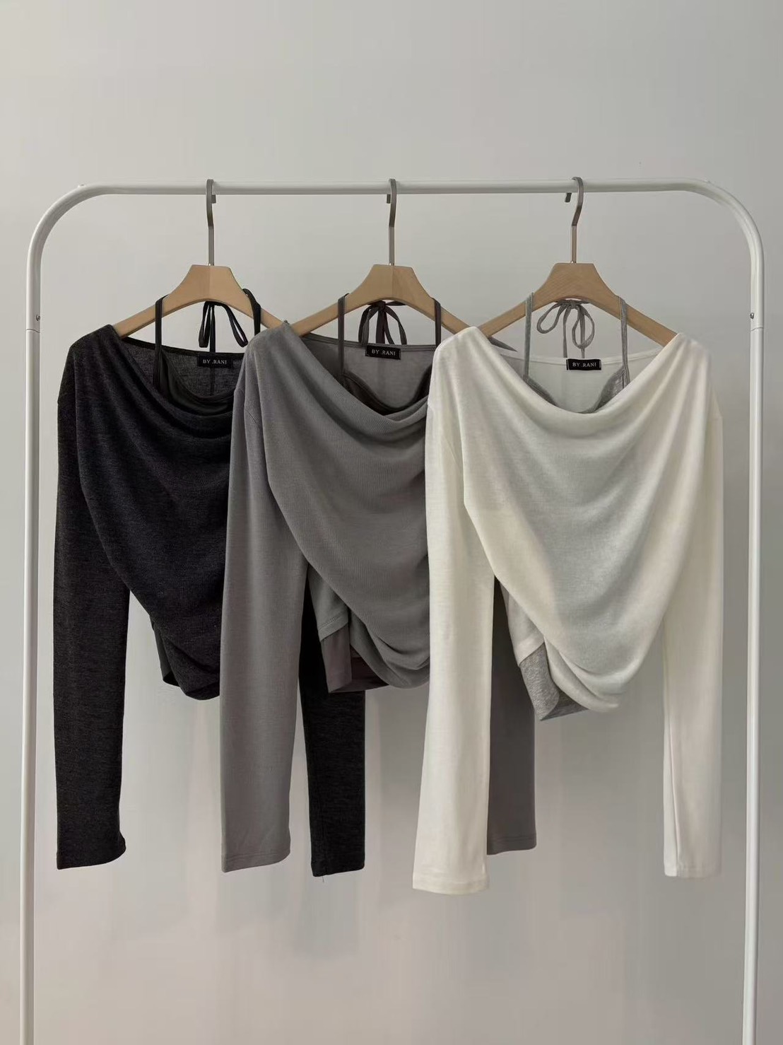 鬆鬆垂領假兩件繞脖上衣