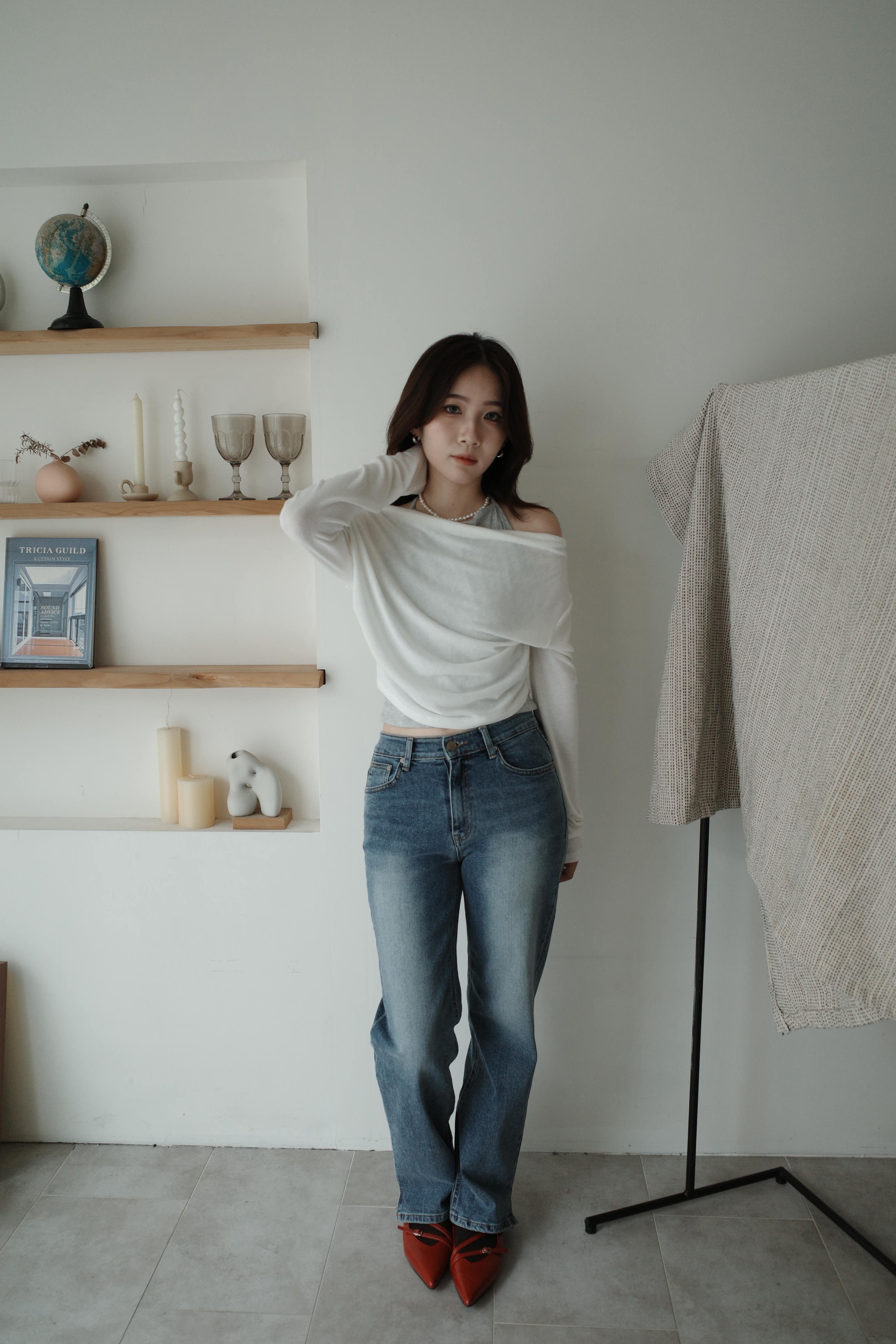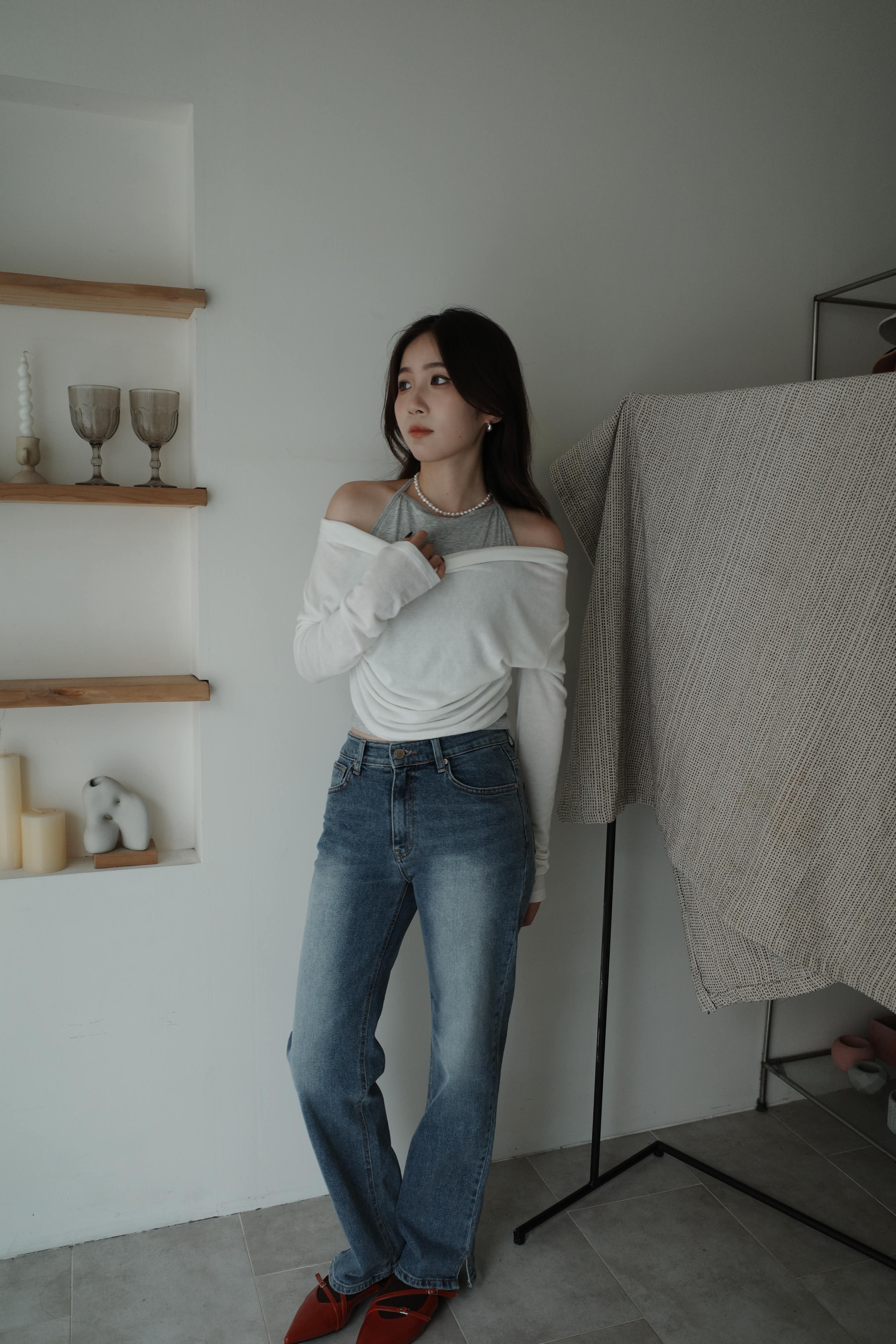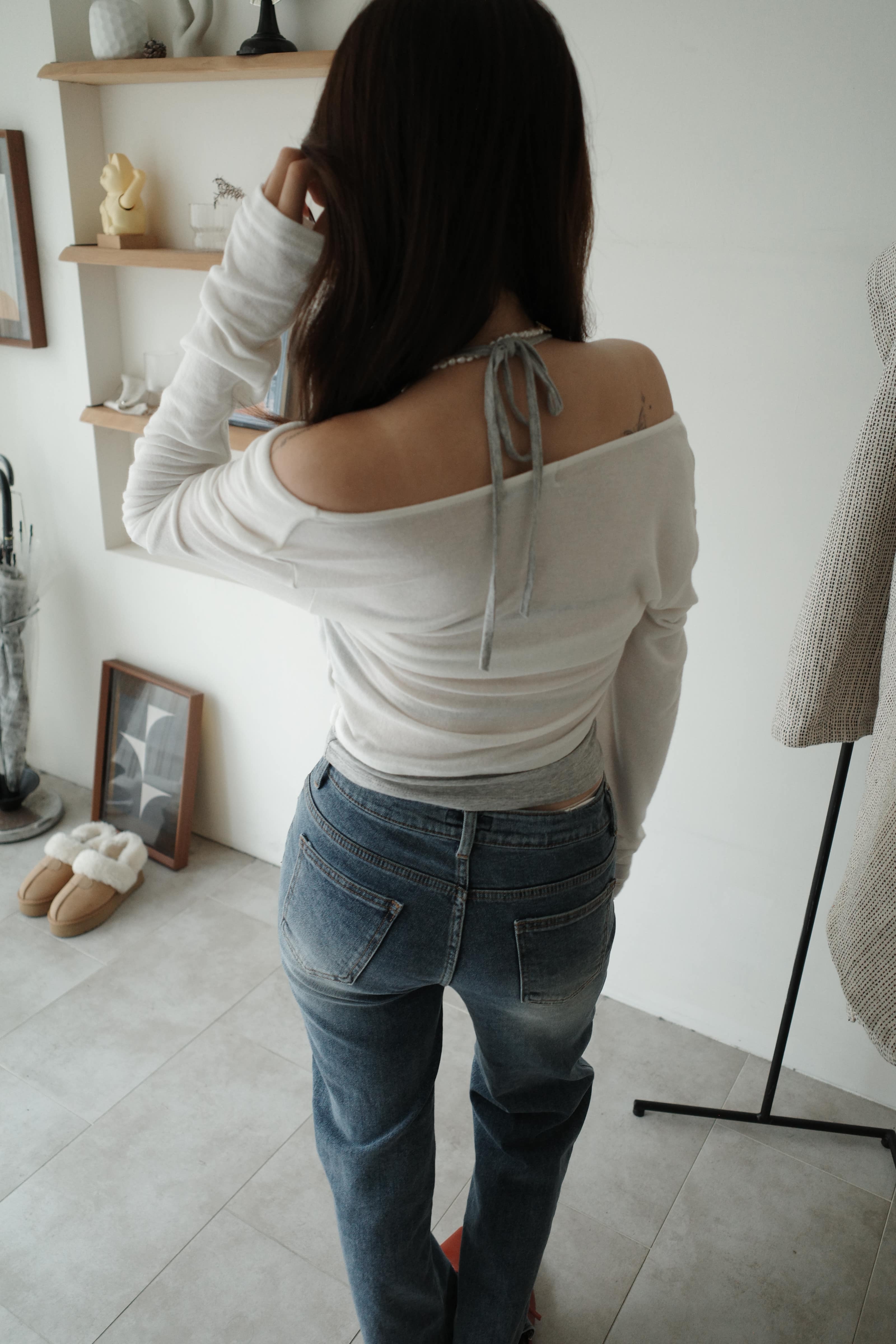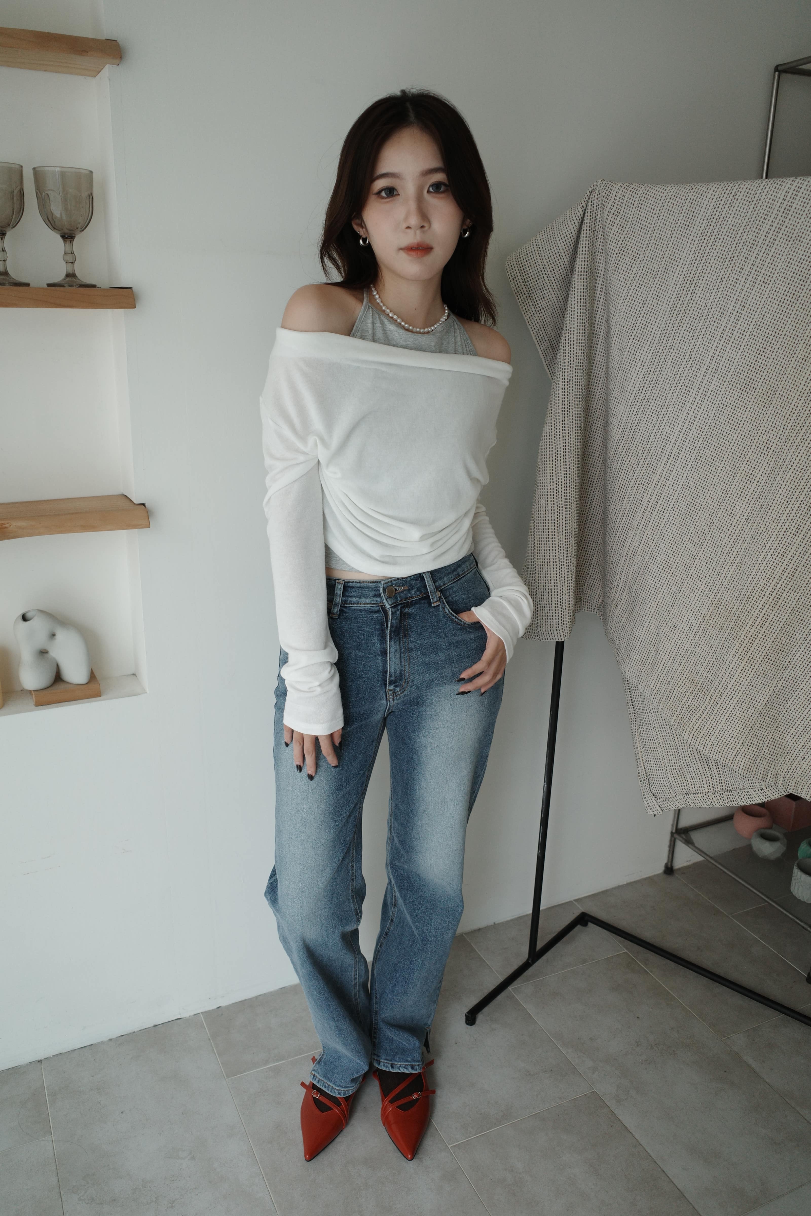 鬆鬆垂領假兩件繞脖上衣