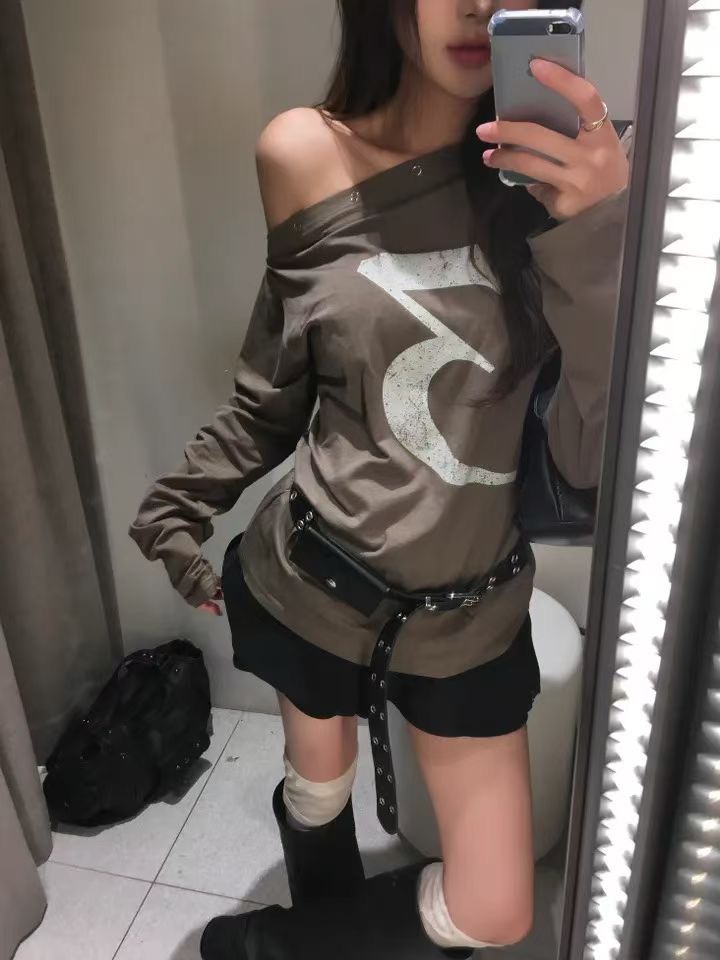 鬆鬆垂領假兩件繞脖上衣